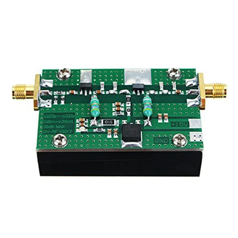 Этот широкополосный РЧ усилитель мощности, подходит для всех видов радио, fm-радио дистанционного управления игрушкой, радио и так далее, вход 1 мВт (0DBM) Максимальная мощность 3 Вт, 15 В напряжение питания, широкополосный 1 МГц до 1000 МГц может работать. Благодаря отличной конструкции, низкая частота может достигать 35 дБм (3 Вт), когда 500 м выходная мощность может достигать 32 дБм (1,6 Вт).