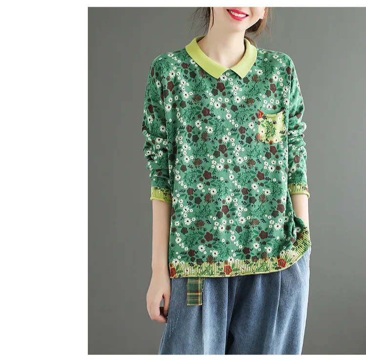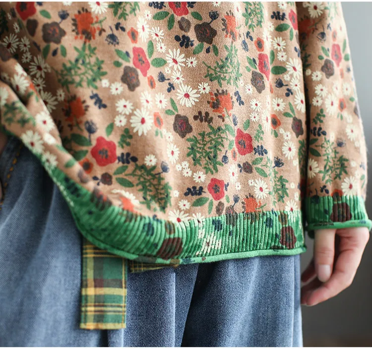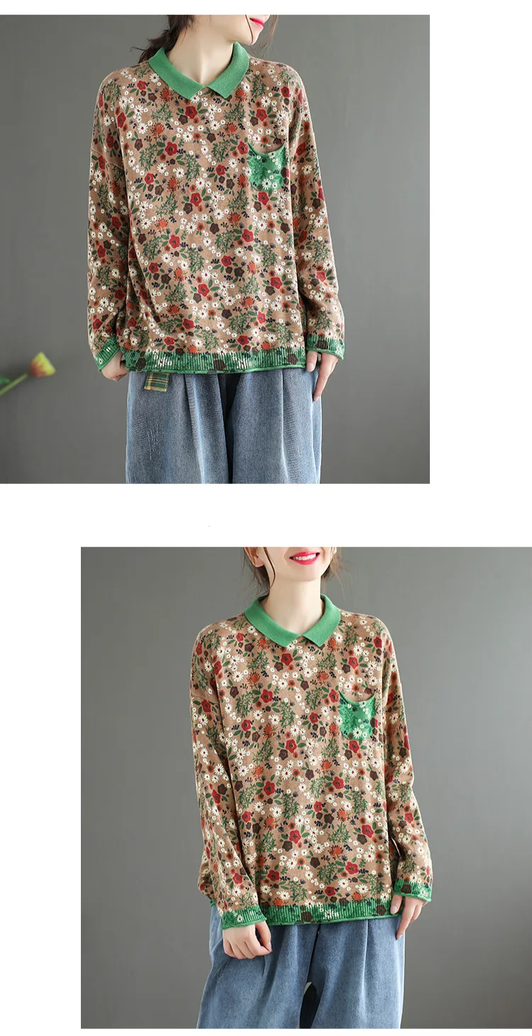 Модные корейские Повседневные вязаные свитера с цветочным принтом