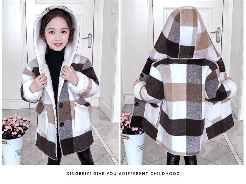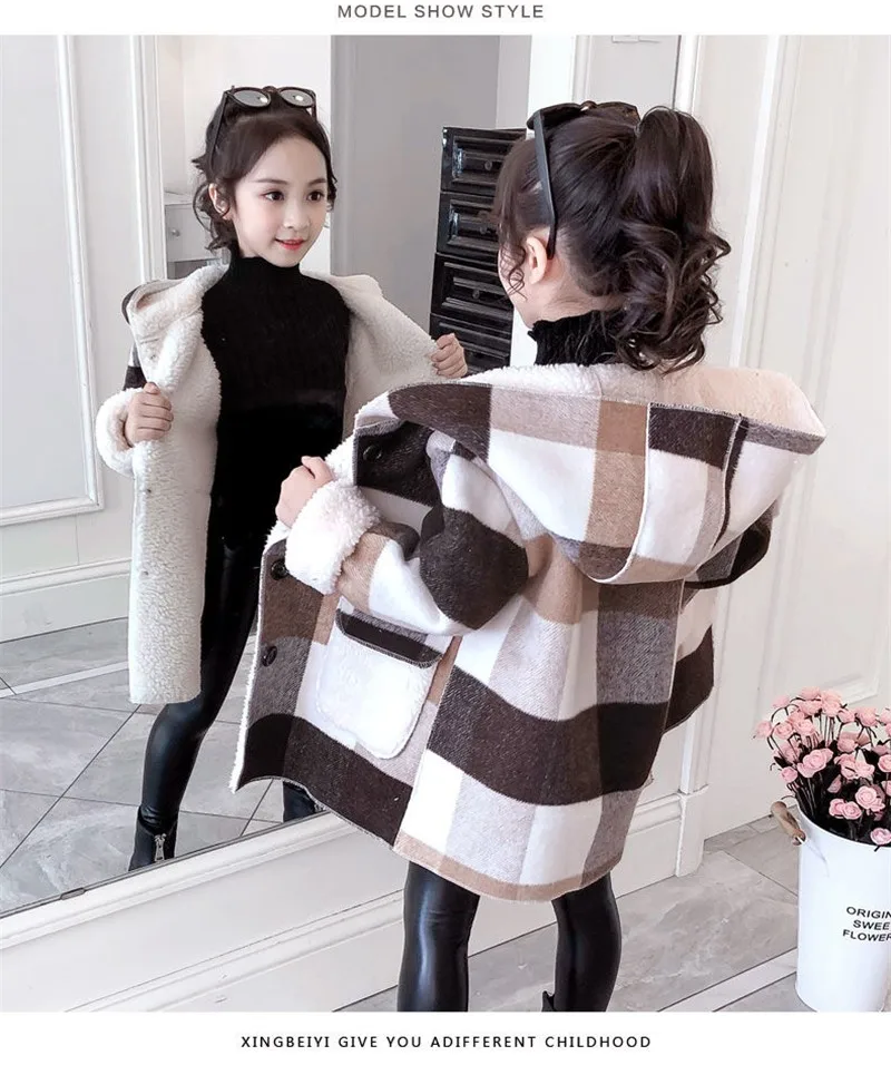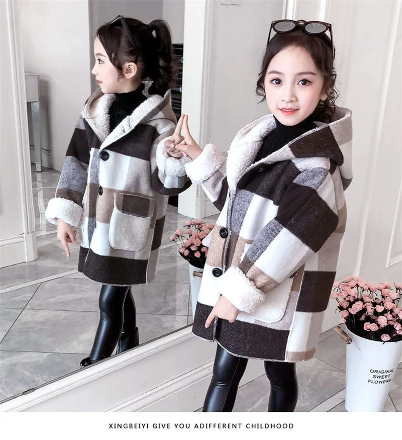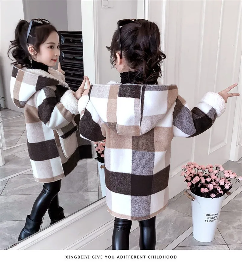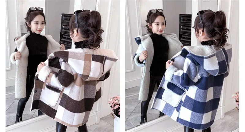 Autumn Winter 2021 Girls Casual Jackets Warm Hooded Outerwear Fashion Woolen Long Coat Children Clothing Teeange Girls Outfits 9