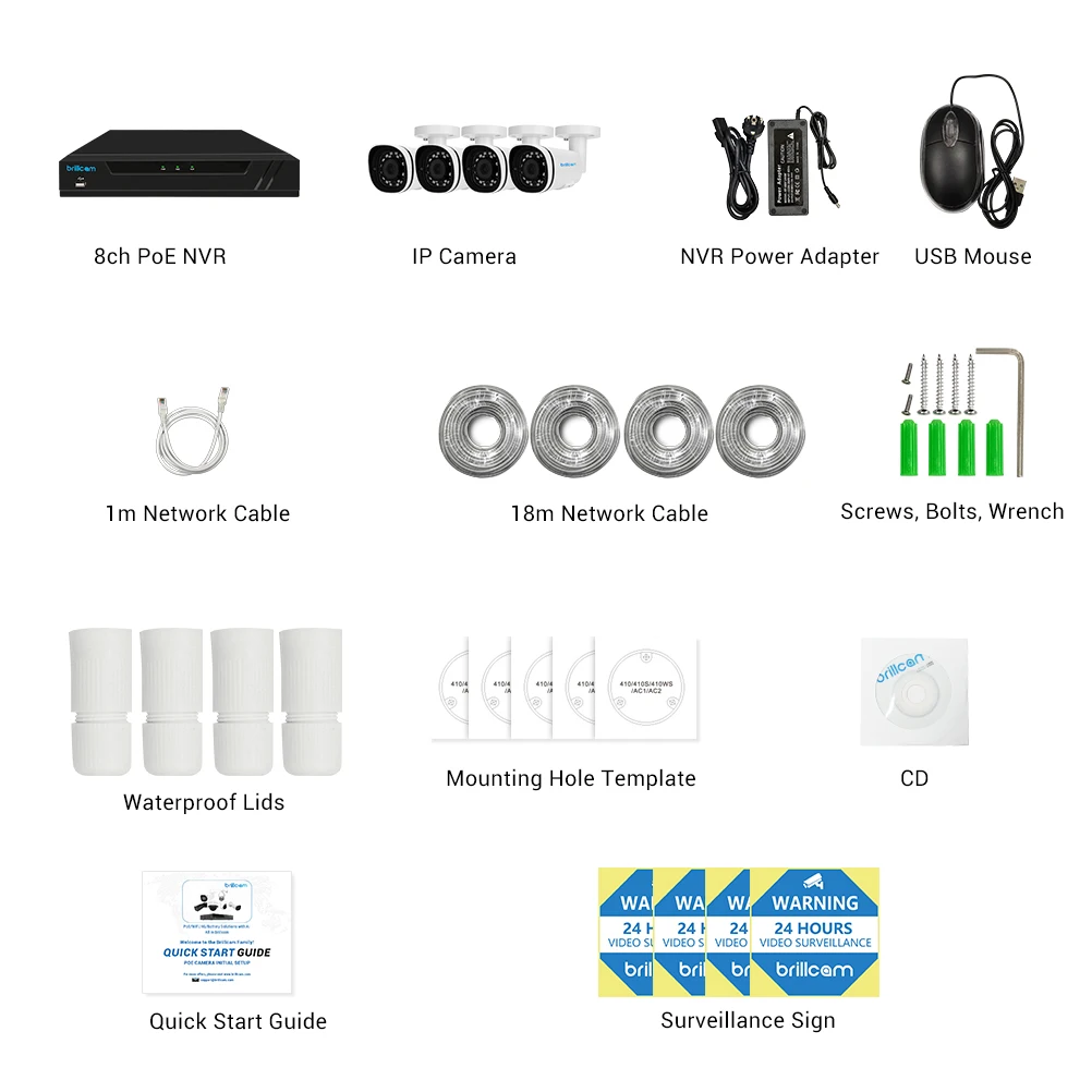 Этот NVR может отлично работать с камерой Brillcam PoE для 24/7 записи, обнаружения движения, обнаружения человека/обнаружения пересекающихся линий/обнаружения вторжений, просмотра в реальном времени, воспроизведения и других функций. И он также поддерживает работу с Brillcam wifi камерой, если они находятся в той же локальной сети.