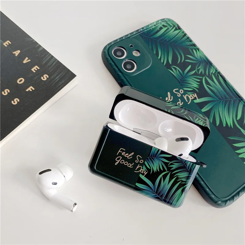 Модный чехол для наушников INS Green Leaf Frame для Apple Airpods 3 2, чехол для зарядки наушников с мультипликационным принтом для Air pods Pro Cover