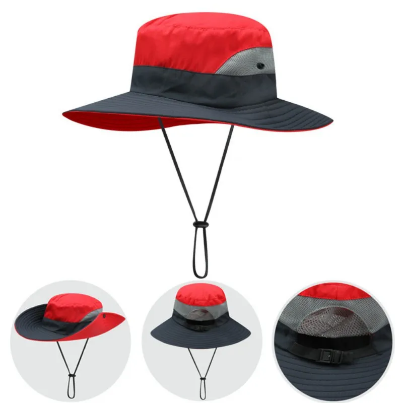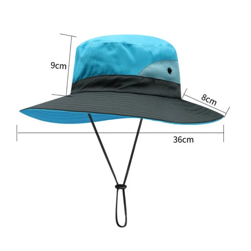Регулируемая тяга: регулируемый ремешок для подбородка используется для фиксации шляпы от солнца, особенно в ветреные дни. Другой ремешок на задней части рыболовной крышки используется для регулировки окружности крышки, чтобы сделать ее наиболее подходящей.