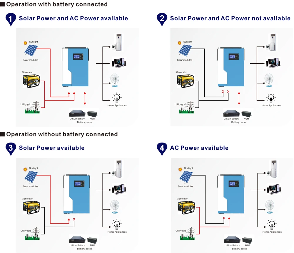 4. Настраиваемый AC/Solar приоритет зарядки через ЖК-настройки