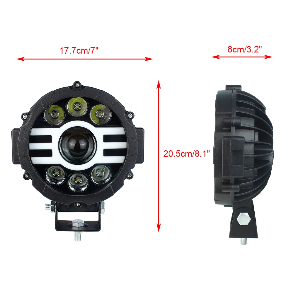 "Технические характеристики Размер: диаметр 7 дюймов Степень водонепроницаемости: IP67 Рабочее напряжение: 10-30 В постоянного тока Материал: литой алюминиевый корпус Посылка 1 шт. или 2 светодиодный т. x светодиодная фара