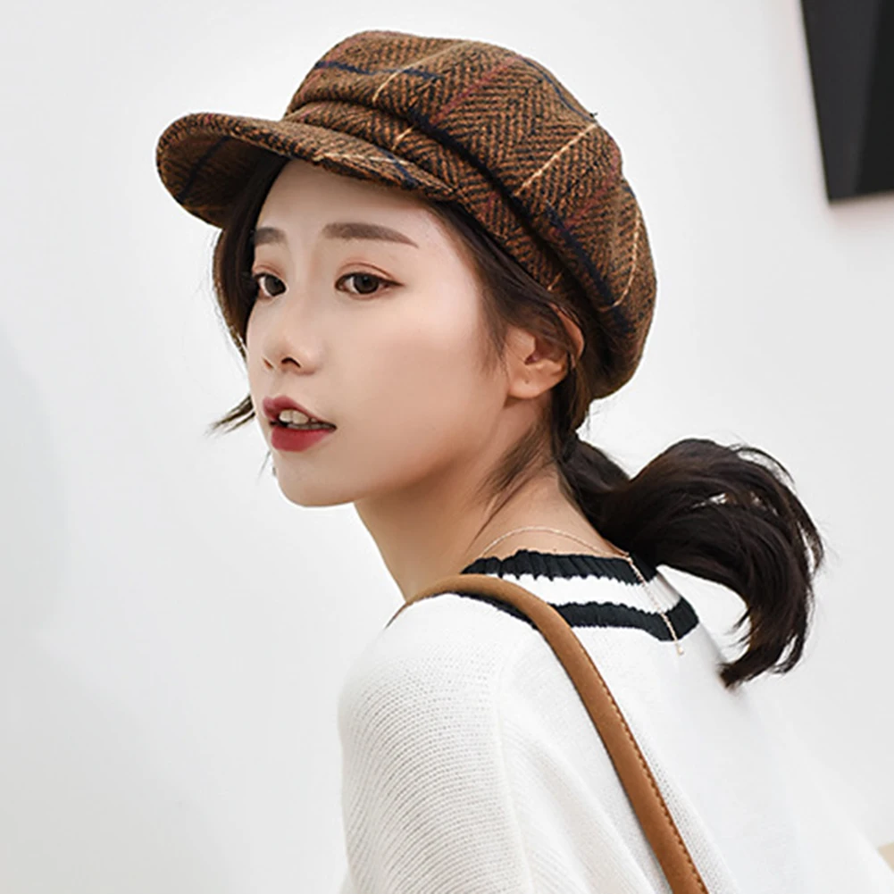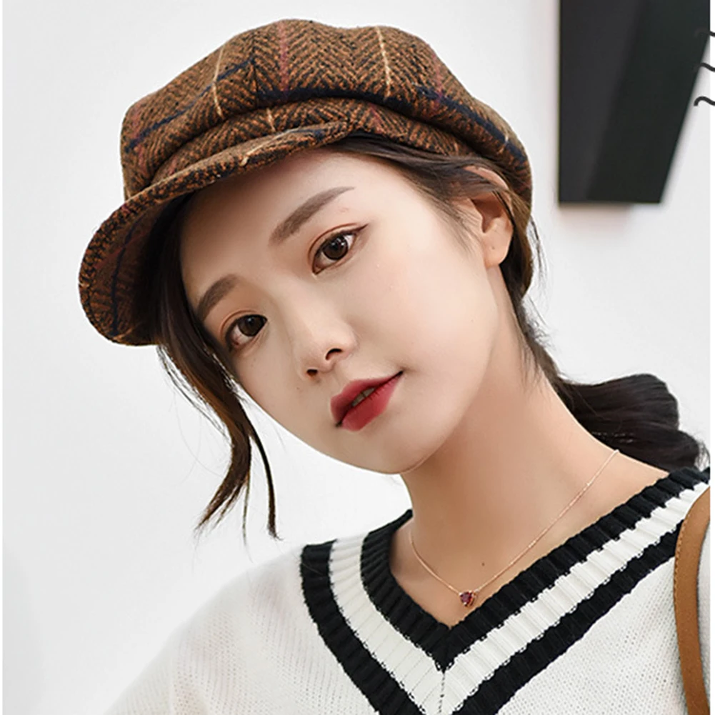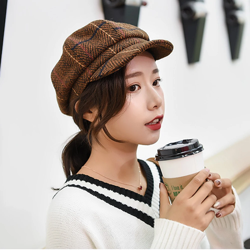 Модная осенне-зимняя женская клетчатая хлопковая кепка на плоской подошве, кепка в стиле кэжуал, берет