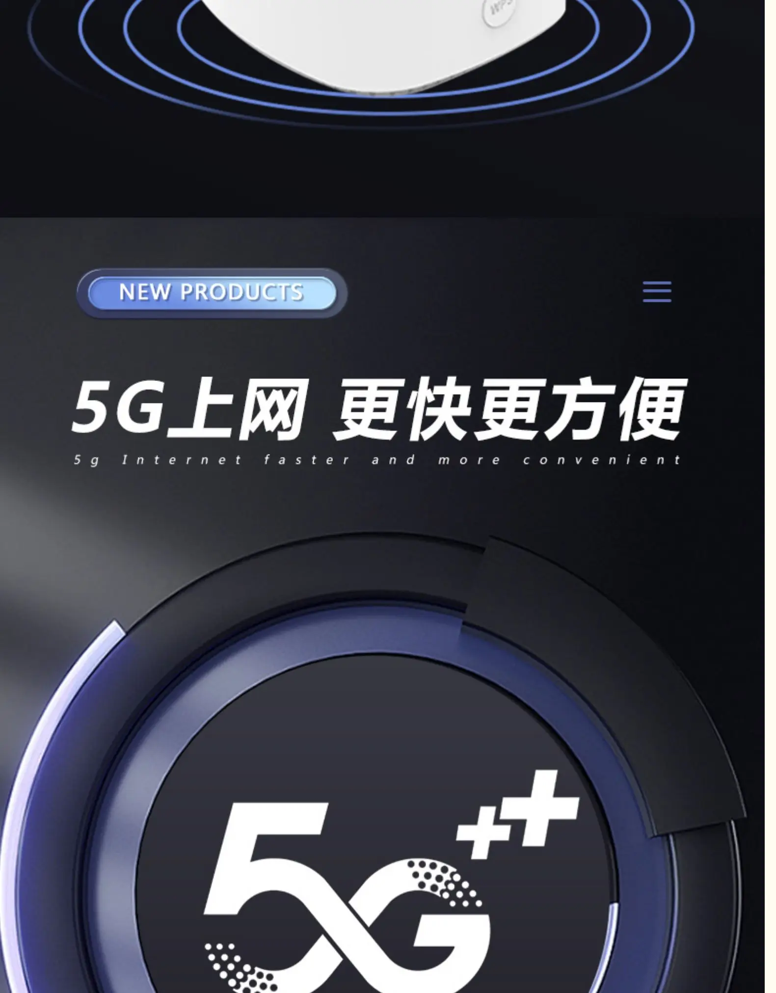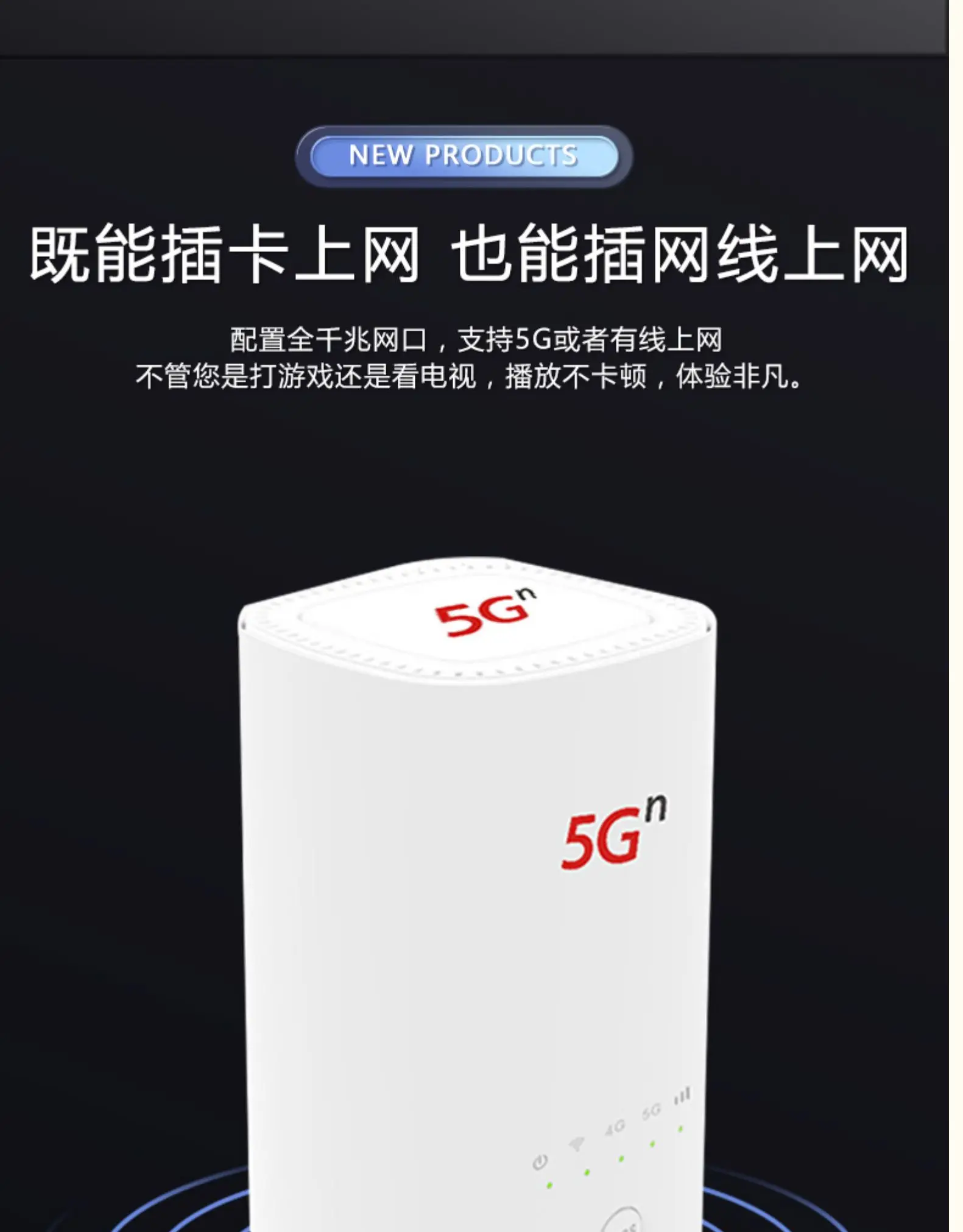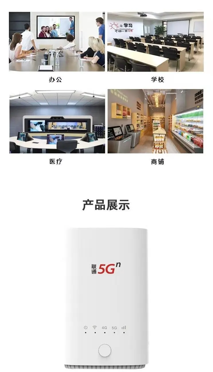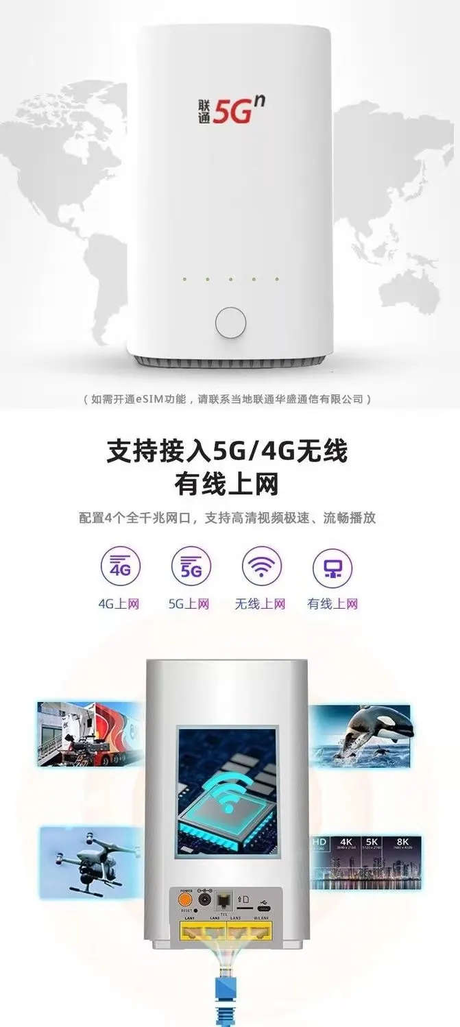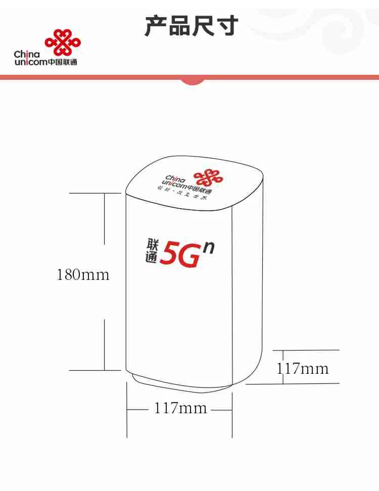 5G CPE VN007 заказной почтой Китая China Unicom может поддержать и 4G /5G беспроводных и проводных Интернет доступа, встроенный 5G полночастотная антенна, тариф загрузки до 2,3 Гбит/с (теоретическое значение), конструкция кольцевого макета, покрытие сигнала 360 градусов.