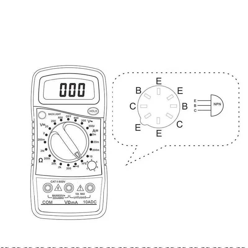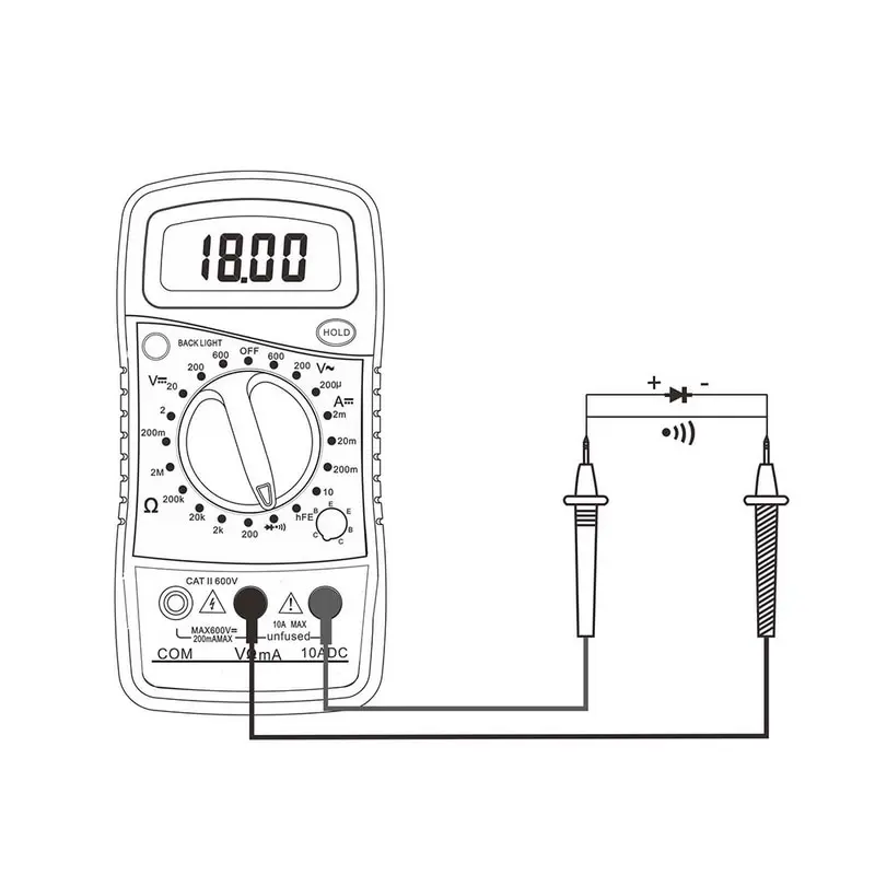 4. Сопротивление: 200Ω-2MΩ ±(0.8% ± 3dgts)