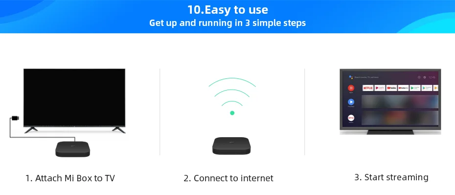 Product Details: Brand: Xiaomi Model: Mi BOX S Type: TV Box 5G WiFi: Yes bluetooth: bluetooth 4.2 Power Supply: Charge Adapter Interface: AV, DC Power Port, HDMI, USB2.0 Antenna: No Language: Multi-language HDMI Version: 2.0 Other Functions: 3D Games, 3D Video, DLNA, ISO Files, Miracast, NTSC, PAL External Subtitle Supported: No HDMI Function: HDCP Power Consumption: 2W Firmware Information System Bit: 64Bit CPU: Quad Core Cortex A53 GPU: Mali-450 RAM: 2G DDR3 ROM: 8G OS: Android 8.1 WIFI: 5G WIFI bluetooth: 4.2 Comes with bluetooth voice remote control Support HD Netflix Support 5.1 surround sound output Power Requirement Power Type: External Power Adapter Mode Battery Information Remote Controller Battery: 2 x AA Battery ( not included ) Media Supported Decoder Format: H.263, H.264, H.265, HD MPEG4 Video format: 3GP, 4K, DIVX, H.264, H.265, M4V, MKV, MP4, MPEG2, MPEG4, RM, RMVB, VC-1, VOB, WMV Audio format: AAC, AMR-NB, AMR-WB, APE, FLAC, OGG, WAV, WMA Photo Format: BMP, GIF, JPEG, TIFF Support 5.1 Surround Sound Output: Yes Package content: 1 x User Manual 1x Power Adapter 1 x HDMI Cable 1 x Remote Control