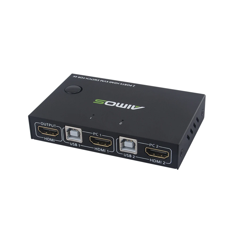 Этот коммутатор AIMOS KVM позволяет управлять 2 хост-устройствами, такими как компьютеры, PS4, PS3, Xbox one, TV box. Он может достичь 2 групп видео источника высокой четкости и usb-интерфейса, Адаптивная Дешифровка EDID/HDCP, Может адаптироваться к различным сложным условиям применения. Оборудование имеет отличную производительность обработки изображений и передачи, делает выходной сигнал более гладким и устойчивым. Это надежный, высокопроизводительный и эффективный способ HDMI-совместимого usb-переключателя. И он может свободно переключаться по горячей клавише. Подходит для офиса, компьютера, хоста мониторинга и т. д.