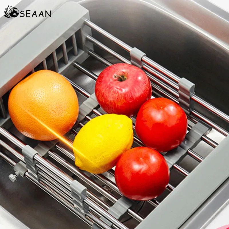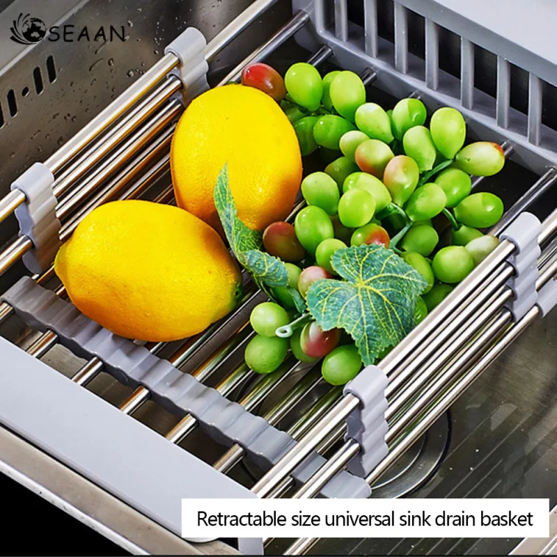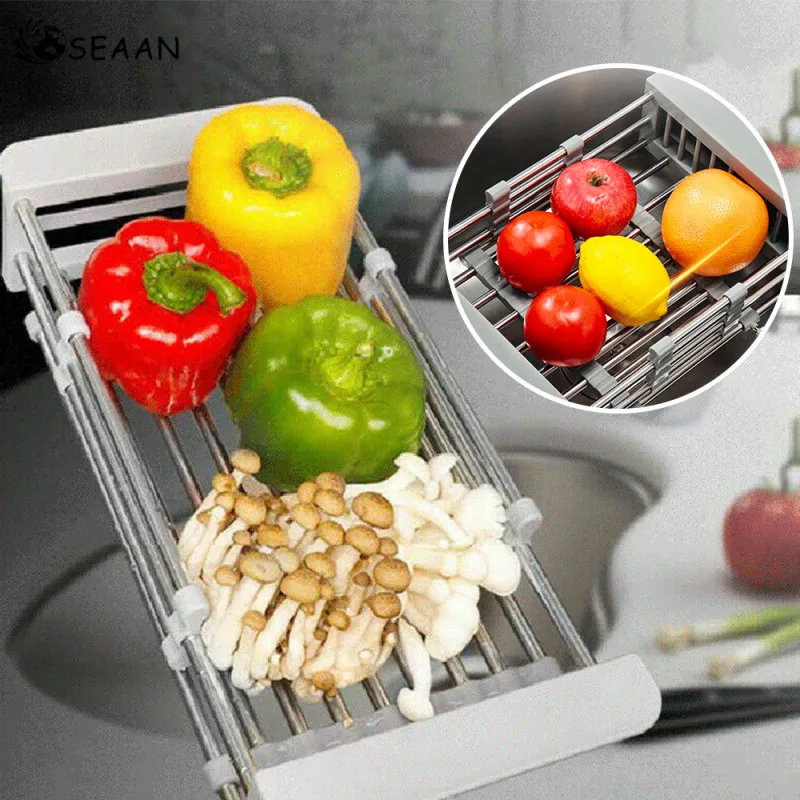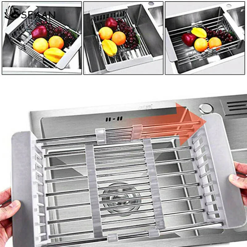 Нержавеющая сталь регулируемый телескопический кухонная раковина, блюдо сушилка вставка фруктовые холодные закуски сушилка для посуды