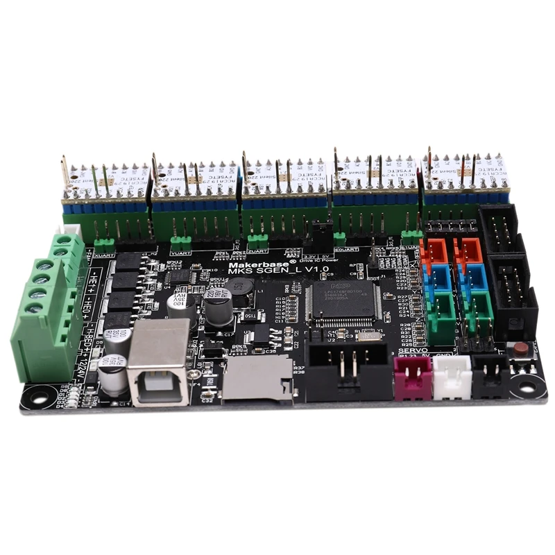 MKS- SGen L-это очень мощная материнская плата для 3D-принтера с 32-битным процессором Cortex-M3 LPC1768, работающим на частоте до 100 МГц, и очень стабильная мощность обработки. Совместим с smoothhieware и прошивкой Marlin 2,0 для различных потребностей. Он мощный и может использоваться с различными драйверами. Он может поддерживать внешний и Линейный режим, а встроенный драйвер совместим с различными режимами специальных драйверов (uart, spi и т. д.). Он совместим с различными lcd sns и MKS серии нажмите sns. Это универсальная и экономичная материнская плата.