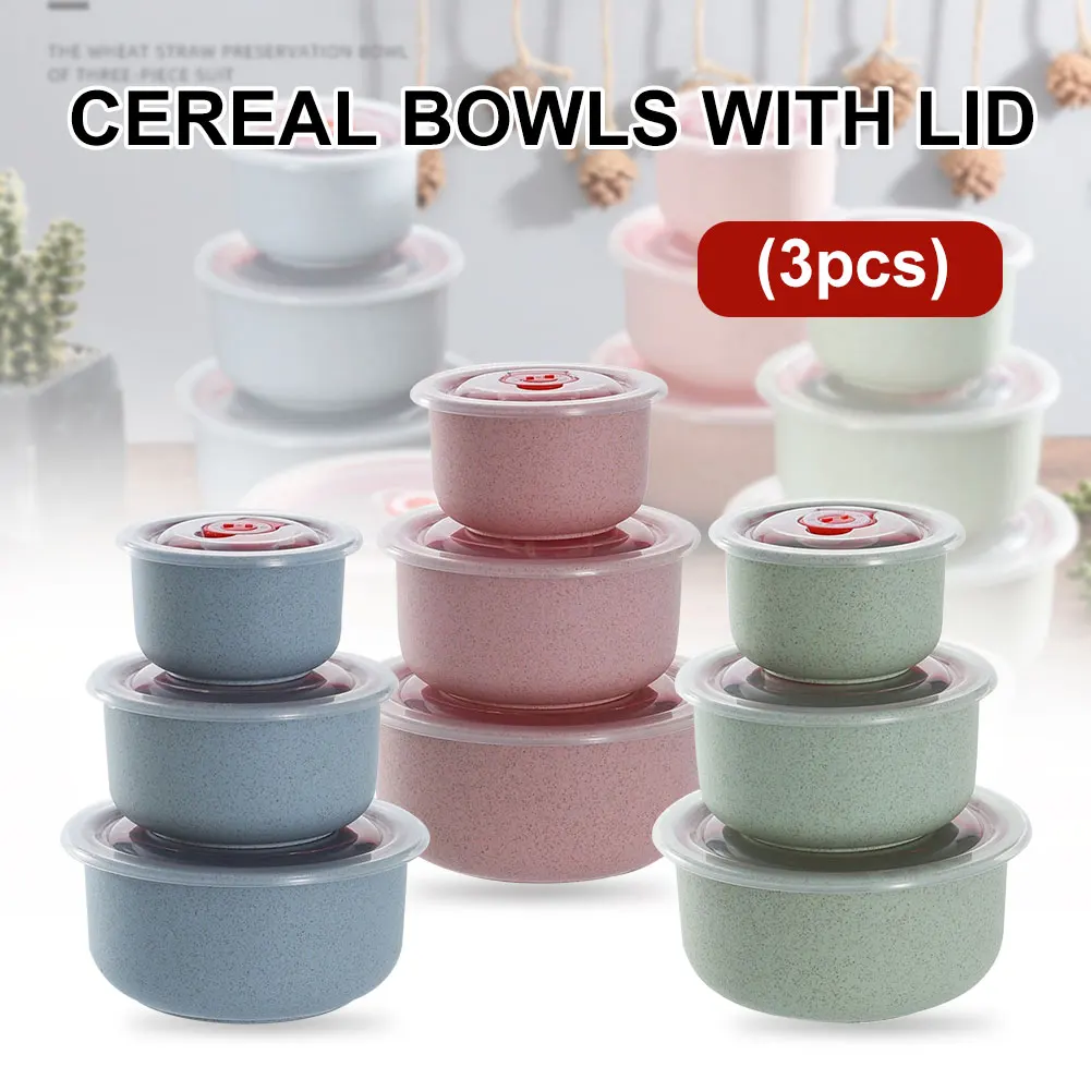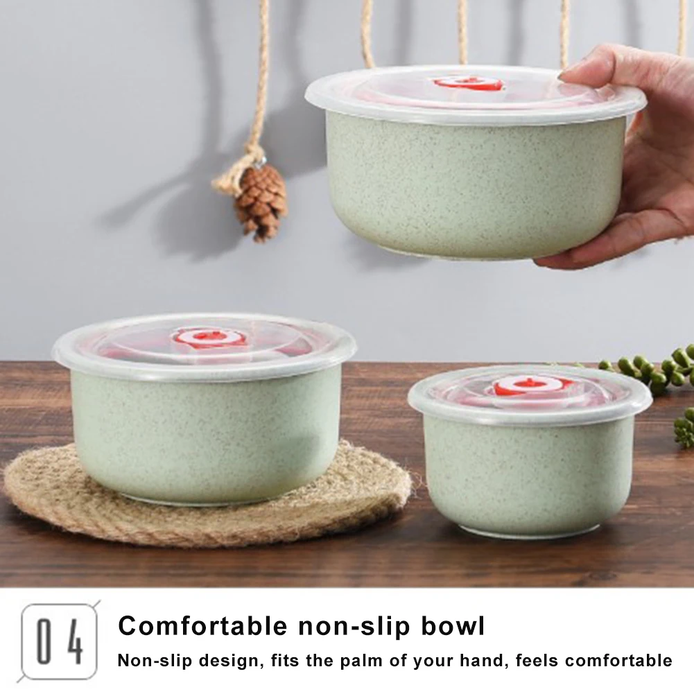 Описание: 1. Цвета: синий, розовый, зеленый, бежевый 2. Вес: 315 г 3. Материал: пшеничная солома 4. Кол-во: 3 шт. (300 мл, 500 мл, 900 мл) 5. Упаковка Размеры: 16,5x16,5x11 см Особенности: 1. 3 миски в наборе в трех размерах (300 мл, 500 мл, 900 мл) для различных задач приготовления пищи и хранения. 2. Утолщенная миска из пшеничной соломы, Экологически чистая, прочная, ударостойкая. 3. Крышка со встроенным силиконовым уплотнительным кольцом и клапаном для сохранения свежести пищи внутри. 4. Температура стойки от-40 °C до 120 °C, микроволновая печь и холодильник безопасны. 5. Толстые и закругленные края не царапают рот, гигиеничны и легко чистятся. Посылка включает в себя: 3 чаши
