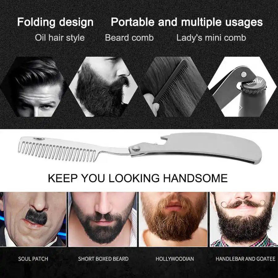 Расческа для формирования бороды, Мужская расческа для формирования усов, Антистатическая Складная расческа из нержавеющей стали