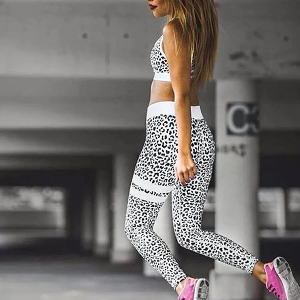 Этот спортивный костюм отличается современным дизайном с принтом и высокой талией для элегантной фигуры. Эта тонкая ткань является гибкой.