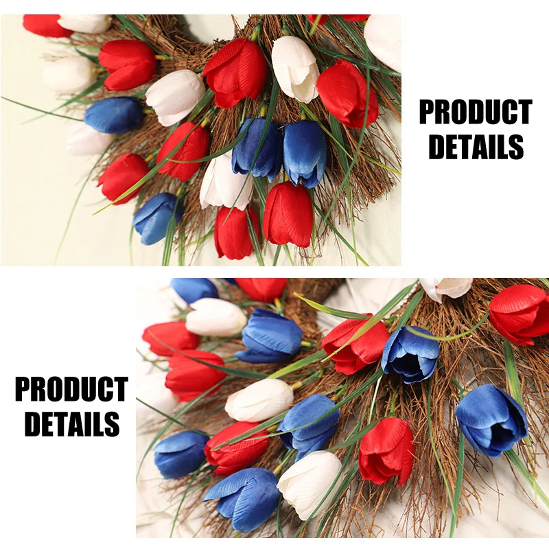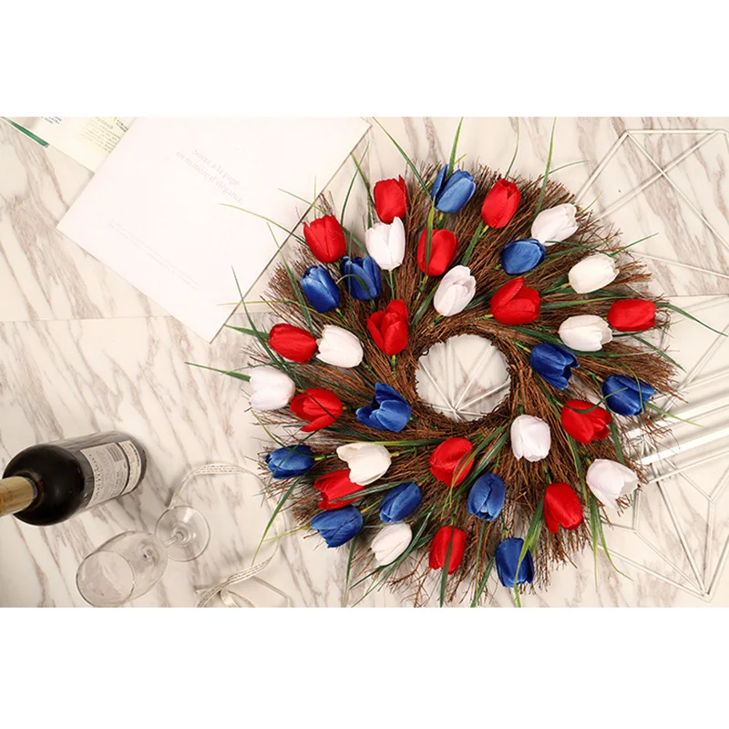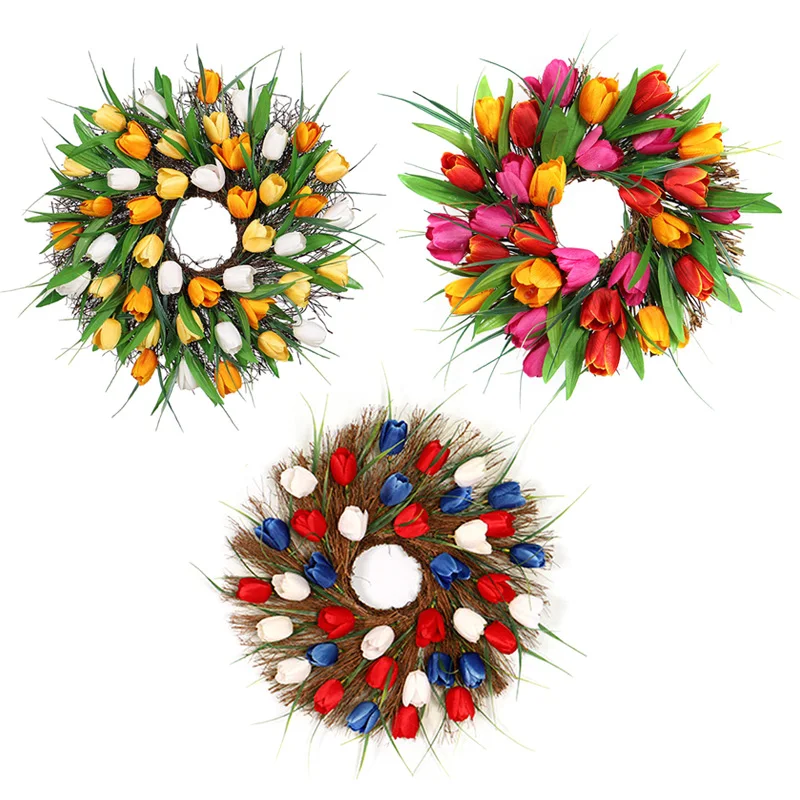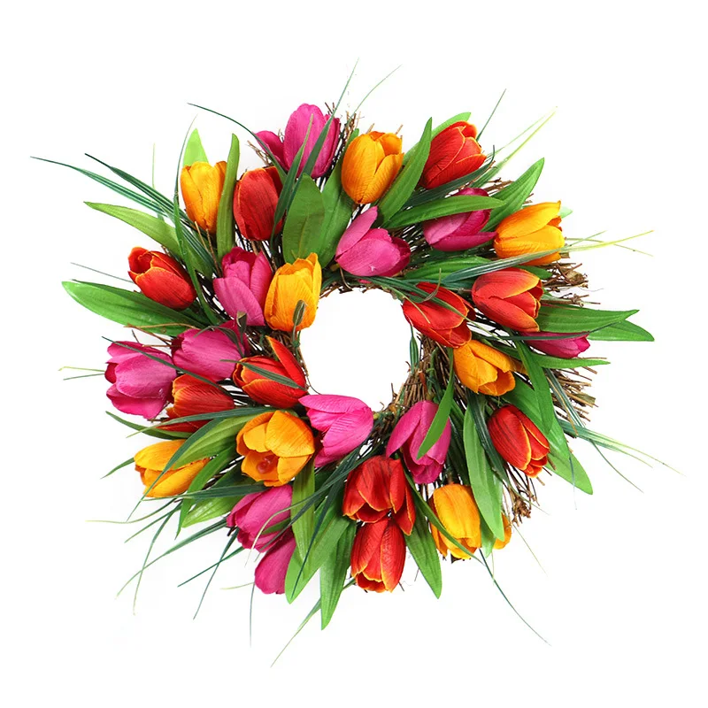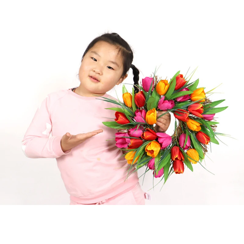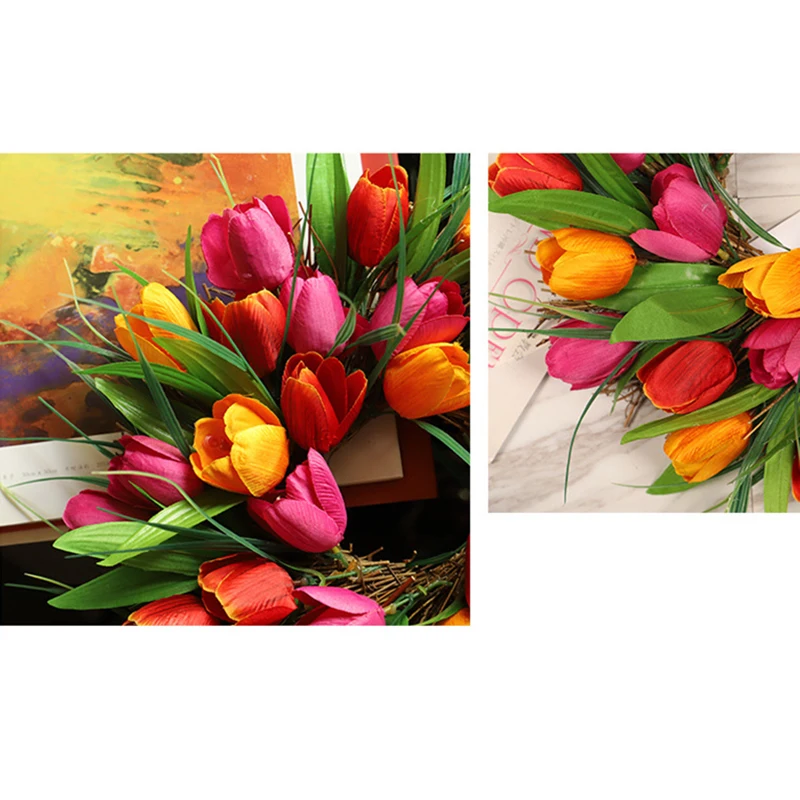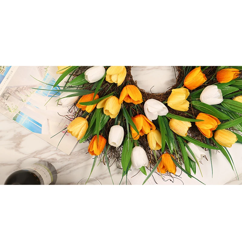 5.Длительное время использования.Весенне-летний венок из тюльпана искусственные Искусственные цветы вдали от прямого дождя и интенсивного солнечного света, которые можно использовать в течение длительного времени.