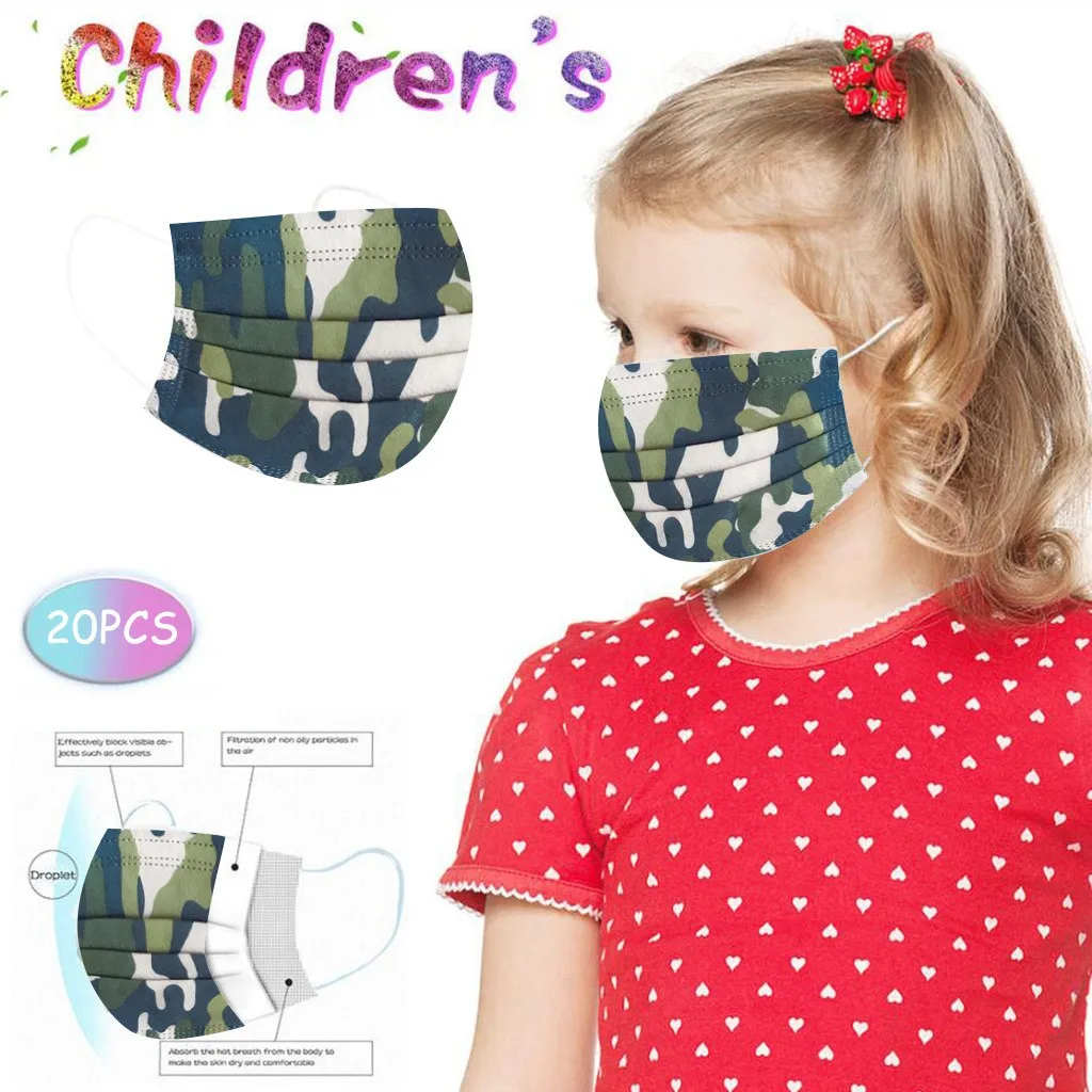 Промышленные Детские многоцветные камуфляжные маски одноразовые маски с принтом