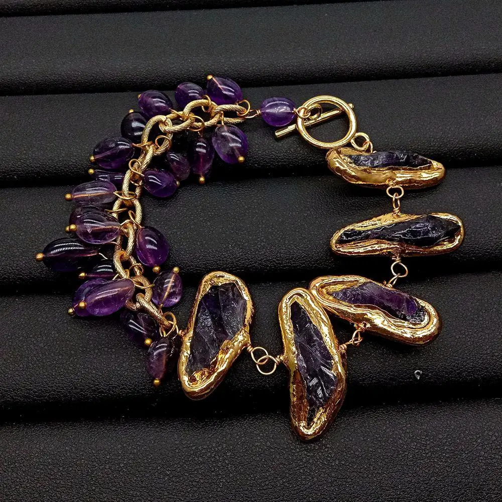 Информация о драгоценных камнями: натуральный Фиолетовый аметист грубая с гальваническим краем, гладкий Аметист Самородок, хорошее качество, высокий блеск!
