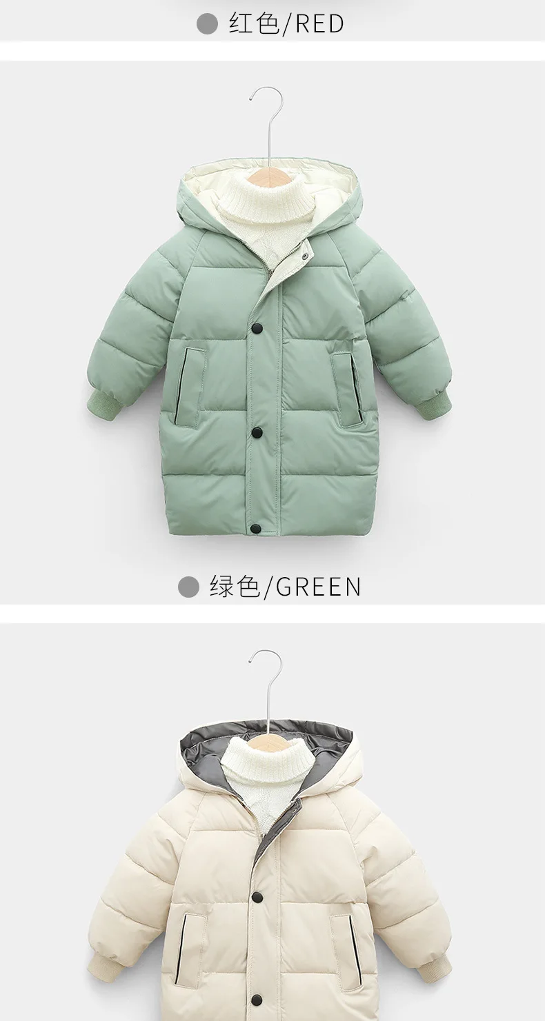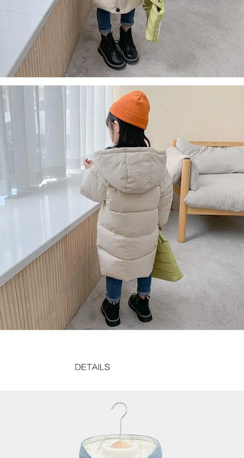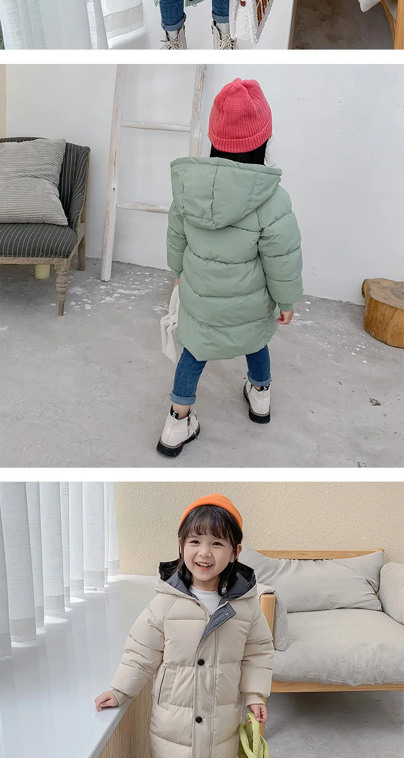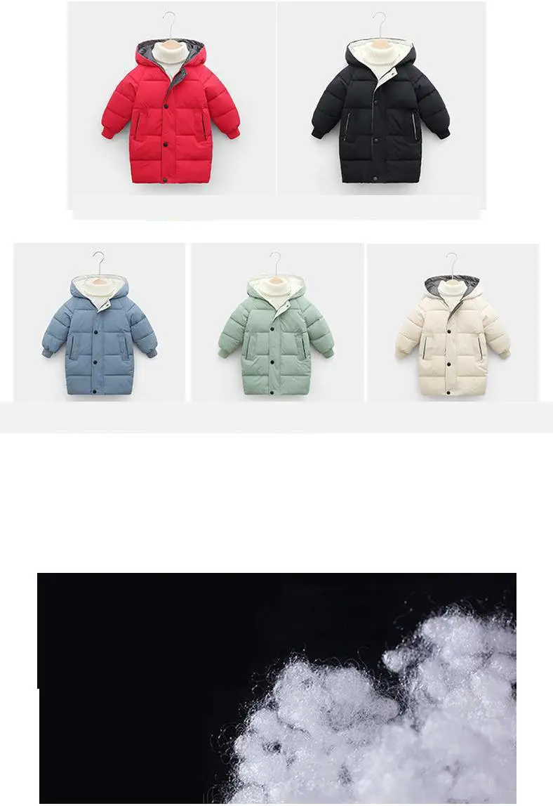 Зимние детские куртки однотонная парка на хлопковом пуху для мальчиков и девочек, пальто для От 3 до 12 лет, Модное теплое пальто для малышей Детские пальто с капюшоном для мальчиков