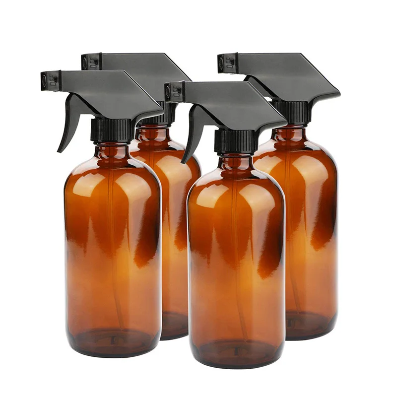 4 упаковки 250/500 мл дорожный пустой Янтарный стеклянный флакон с распылителем для эфирного масла Очищающая многоразовая курковая бутылка жидкость контейнер с распылителем