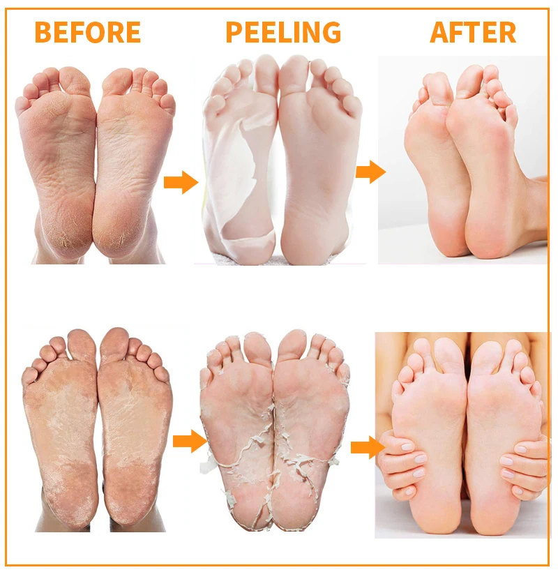1. Вымойте и Замочите ноги горячей водой, а затем высушите ноги. 2. Используйте ножницы, чтобы вырезать Уплотнение Маски для ног посылка. 3. Носите маску для ног, мы рекомендуем носить пару нормальных носков снаружи, чтобы обеспечить достаточный контакт с эссенцией. 4. Снимите маску для ног через 35-95 минут, затем очистите ноги. 5. Большинство людей начинают очищать омертвевшую кожу после 48 часов использования, но из-за различных типов кожи кому-то может потребоваться 2-3 пары, пожалуйста, используйте маску для ног снова 48 часов позже. 6. Не используйте маску, если у вас есть активный порез или ран. 7. Мы предлагаем вам замочить ноги горячей водой после 48 часов использования.