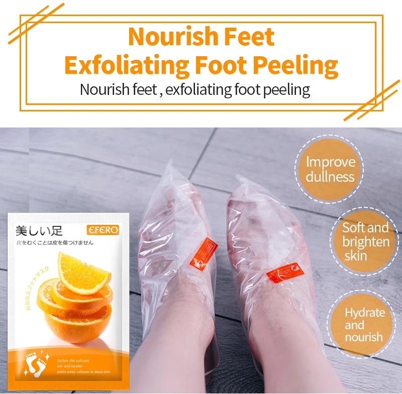 EFERO 2 пары оранжевых масок для ног, удаляет омертвевшую кожу, гладкая отшелушивающая маска для ног, Отбеливающая увлажняющая маска для педикюра, носки