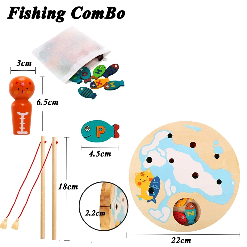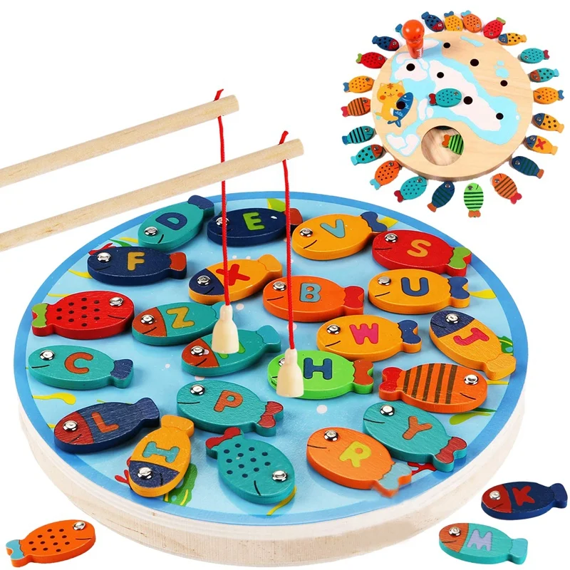 Деревянная игра для рыбалки с несколькими игроками для тесного взаимодействия и общения. Выберите буквы или цвета для дошкольных игрушек Монтессори, чтобы малыши могли поймать нужную рыбу!