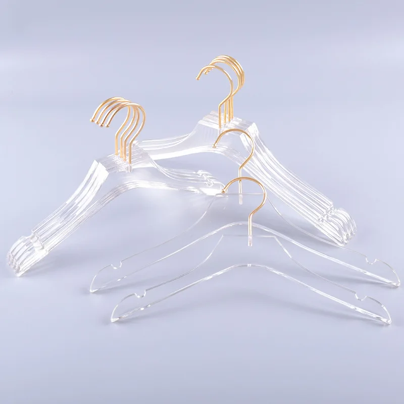 5 шт. прозрачная акриловая вешалка для одежды с золотым крючком, прозрачные майки, вешалка для одежды с вырезами для леди, детей
