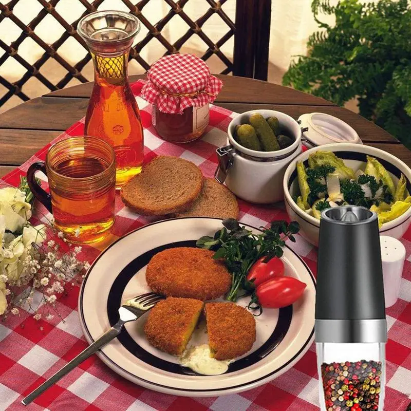 Премиум гравитационная электрическая мельница для соли и перца, набор из 2 солонка на батарейках, автоматическая мельница для перца одной рукой со светодиодом
