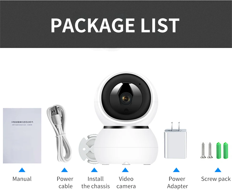 ① Ip-камера с разрешением 1080P FHD, возможность удаленного просмотра мобильного телефона.
