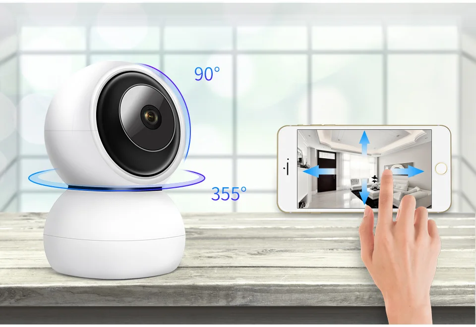 Головка камеры вращается с поворотом на 355 ° и наклоном на 90 °.