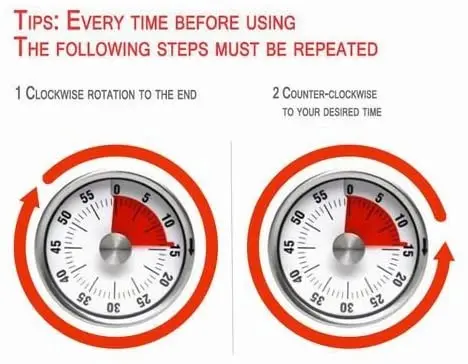 5. Простой в использовании, вы просто поверните циферблат по часовой стрелке до отметки 59 минут, затем поверните против часовой стрелки до желаемого времени
