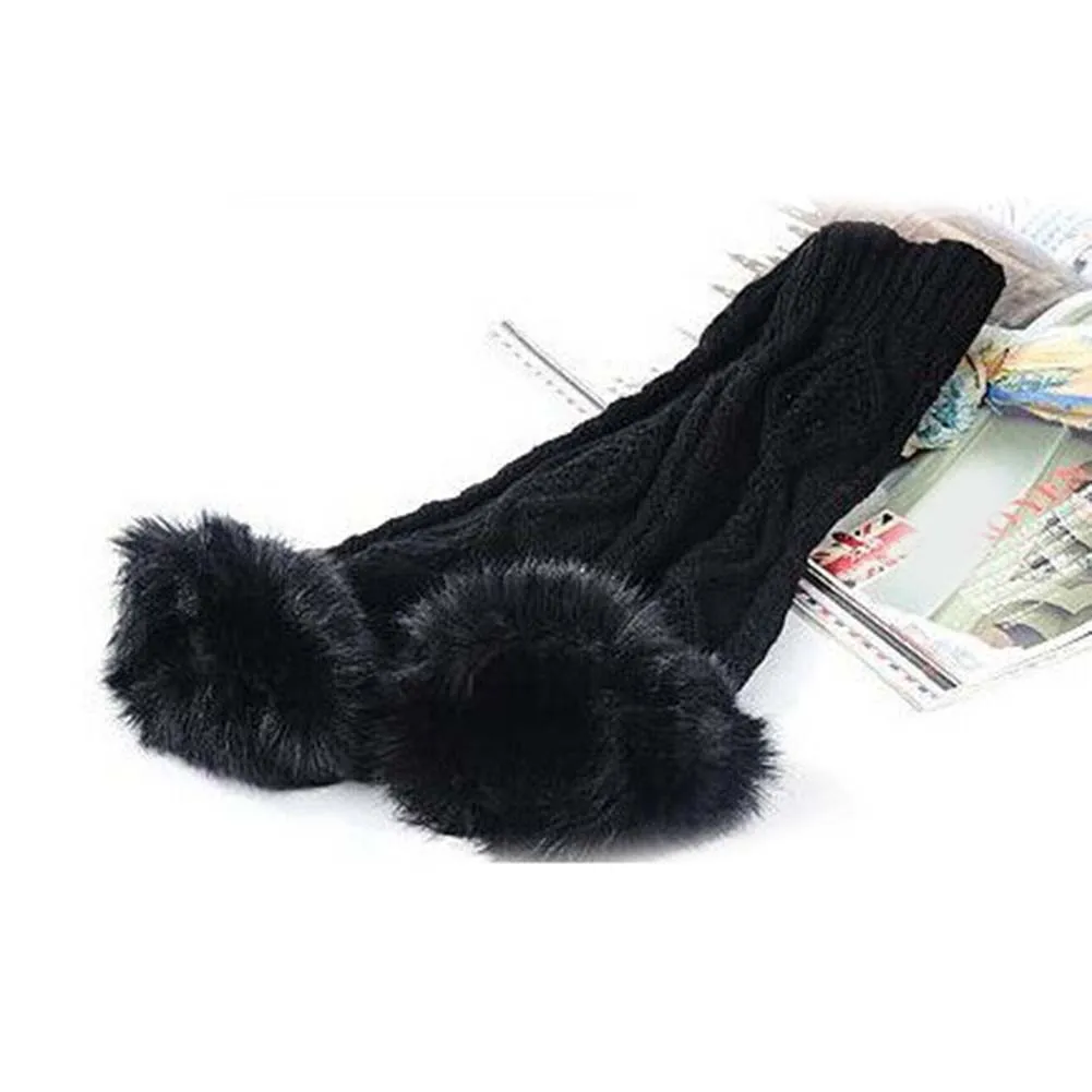Женские однотонные длинные трикотажные перчатки без пальцев, теплые Рукава из искусственного меха