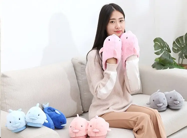 Милые тапочки с дельфинами для девочек; Меховая обувь домашние тапки; Мужская зимняя домашняя обувь; Новое поступление; Забавные тапочки; Женская домашняя обувь; 2019