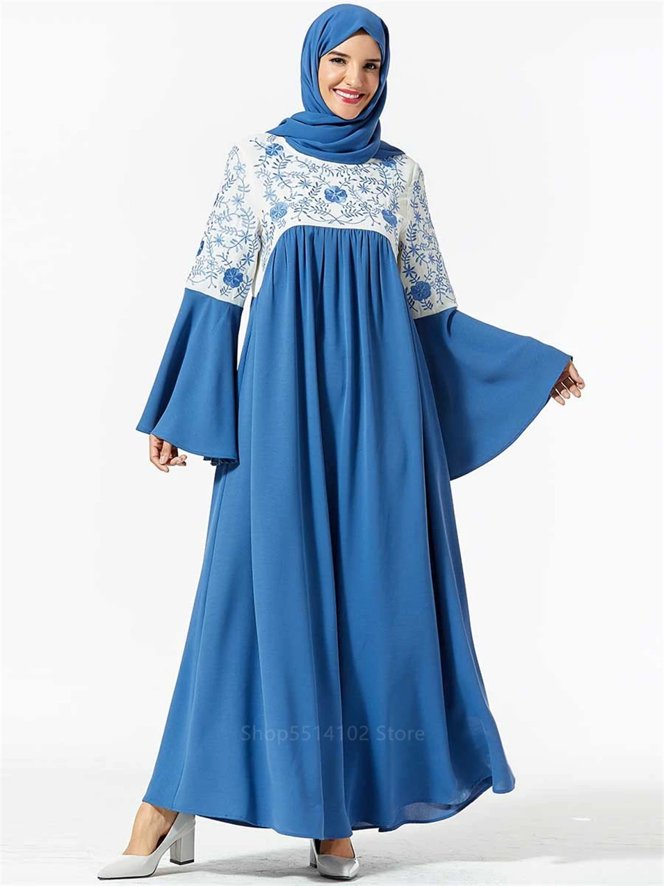 Модная женская мусульманская одежда, хиджаб, платье с цветочной вышивкой, Абая Дубай, кафтан, марокаин, Пакистан, арабский, вечерние, длинный халат