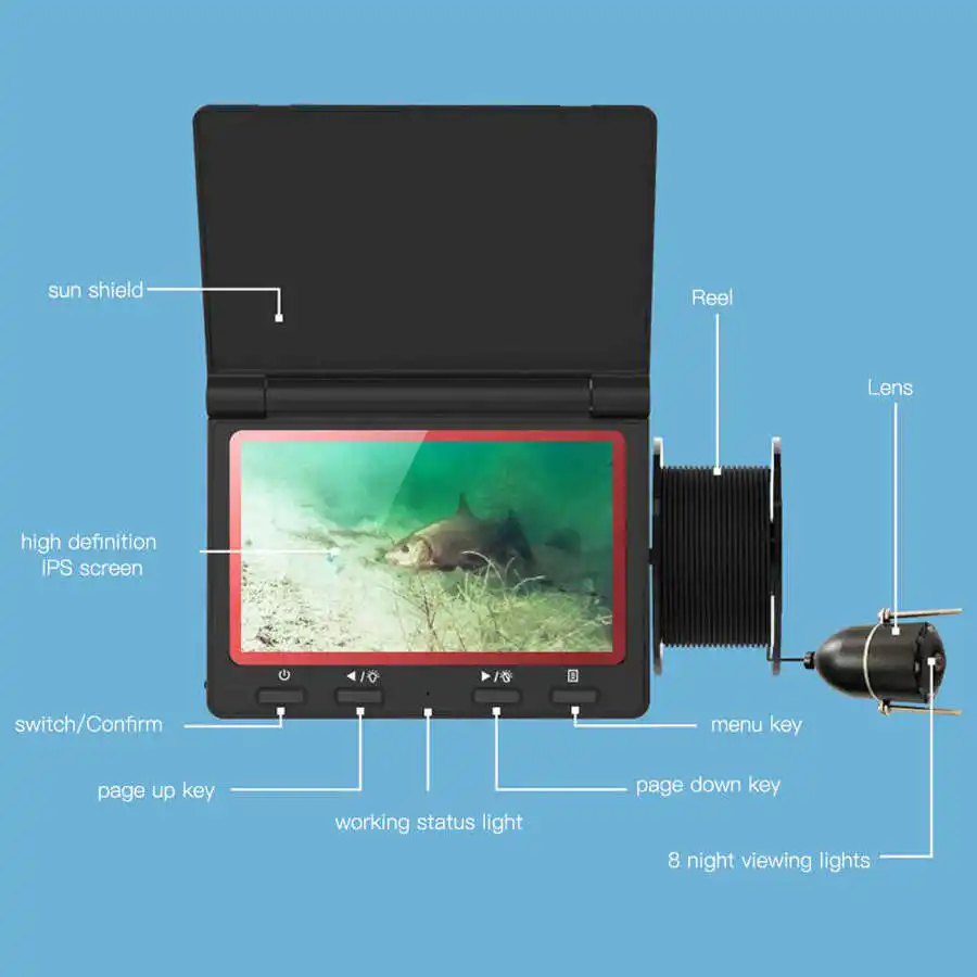 1 x Fish finder Адаптер-1 шт. USB кабель (1 шт.); 1 x кронштейн 2x18650 батарея Руководство пользователя (1 шт.) 1 комплект x линейная катушка + объектив Сумка для хранения-1 шт.