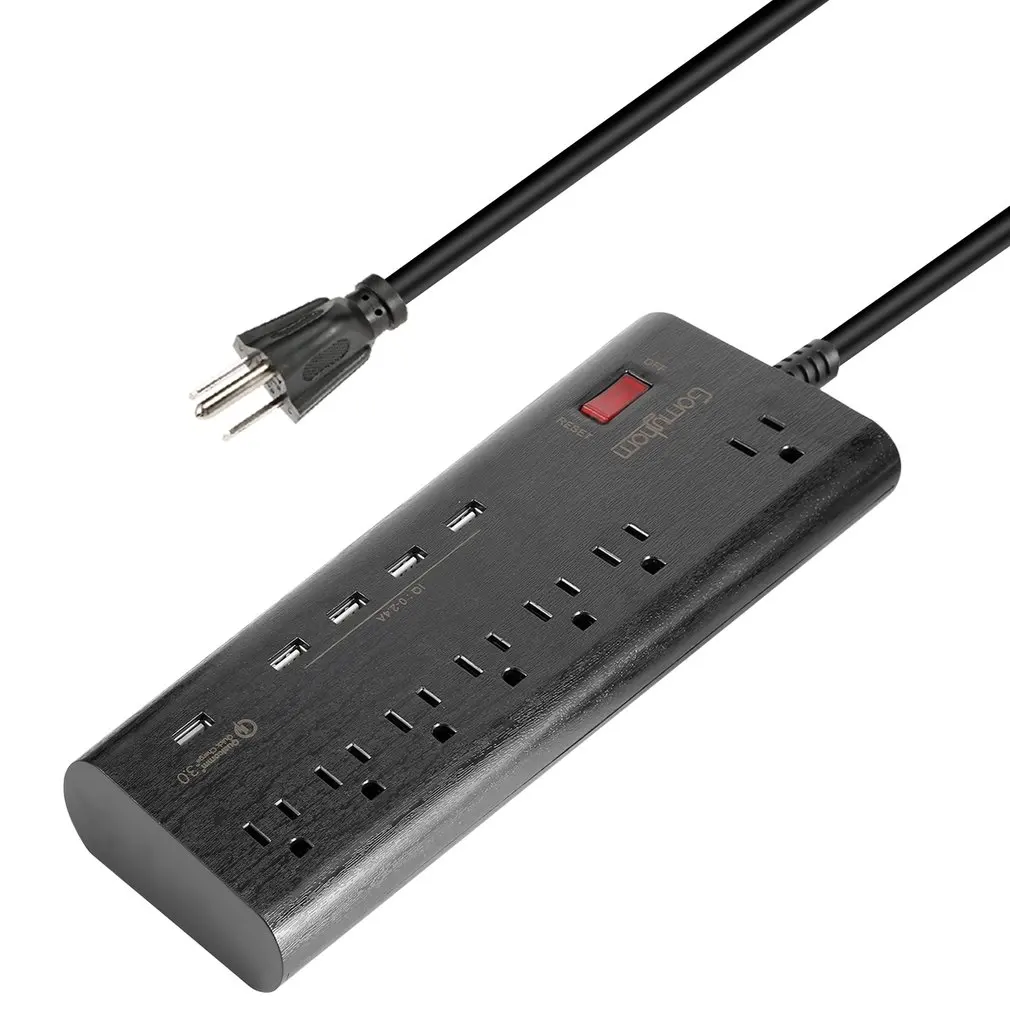 7-полосная розетка: 7-выходная полоса питания подходит для всех ваших домашних и офисных электроприборов, таких как компьютеры, факс, модемы, принтеры, стереосистемы и многое другое, защищая вашу электронику от скачков и шипов.