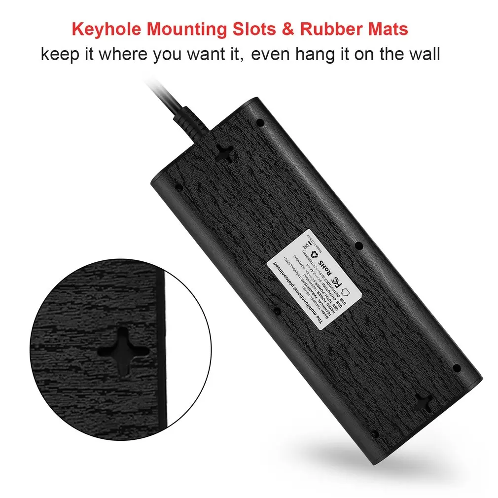 Компактный дизайн: 1 широко распределенные розетки переменного тока вмещают большие адаптеры питания или зарядные устройства. Кнопки удерживания клавиш на задней части полосы питания позволяют легко установить их на стену или опорную панель.