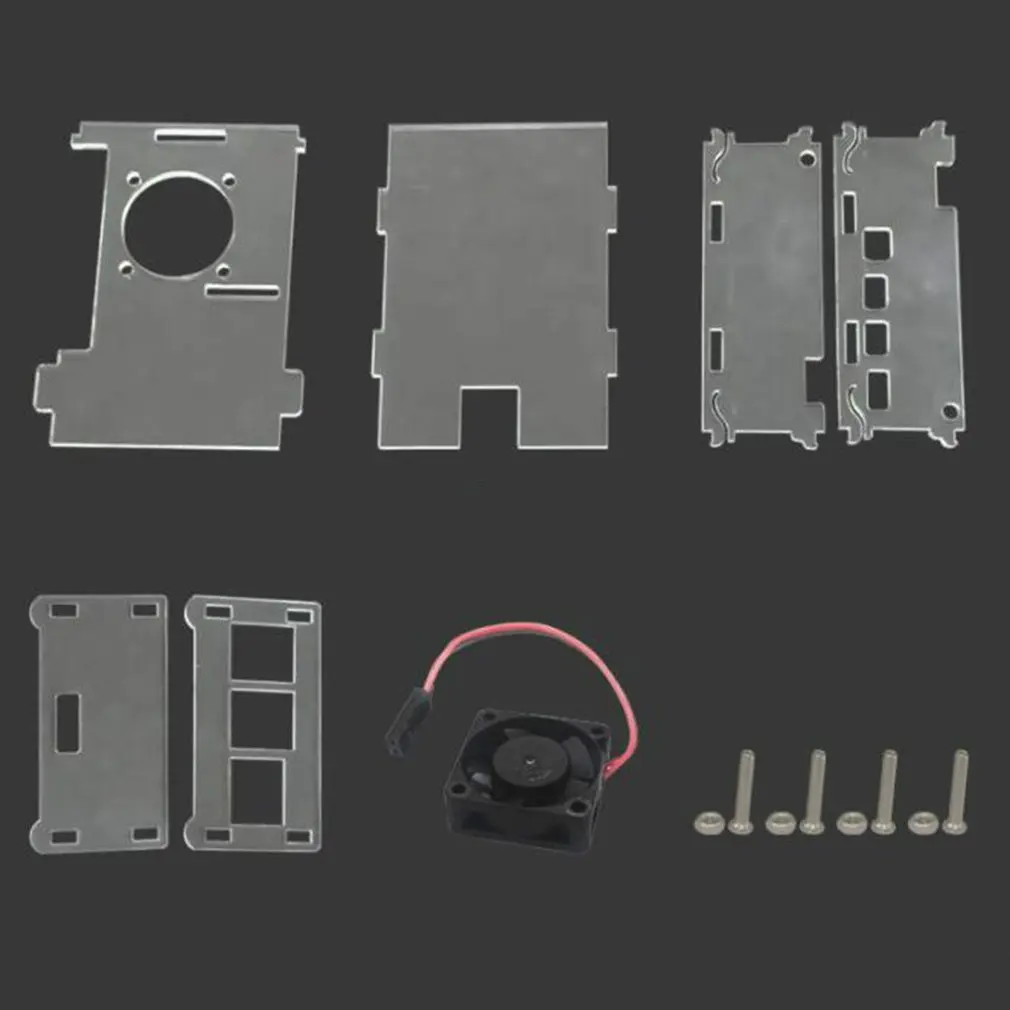 Для Raspberry Pi 3 акриловый чехол с прозрачной коробкой + вентилятор процессора + 3 шт. алюминиевый радиатор для Raspberry Pi 3 Model B Plus