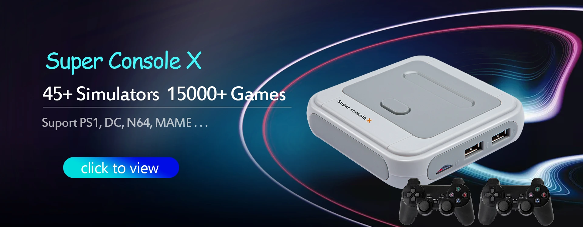 Super Console X-это новая 2020 видеоигровая консоль, встроенные 45 + эмуляторов, 15000 игр, система с открытым исходным кодом, поддерживает самодобавляющиеся игры, поставляется с картой памяти 64 Гб/128 ГБ, может вмещать 1-5 человек для совместной игры, предпочтительно для семейного собрания.