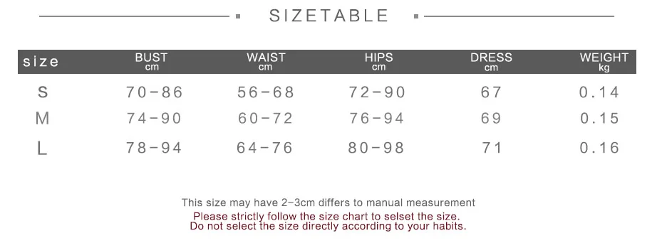 Пожалуйста, внимательно проверьте таблицу размеров перед тем, как Купите товар.