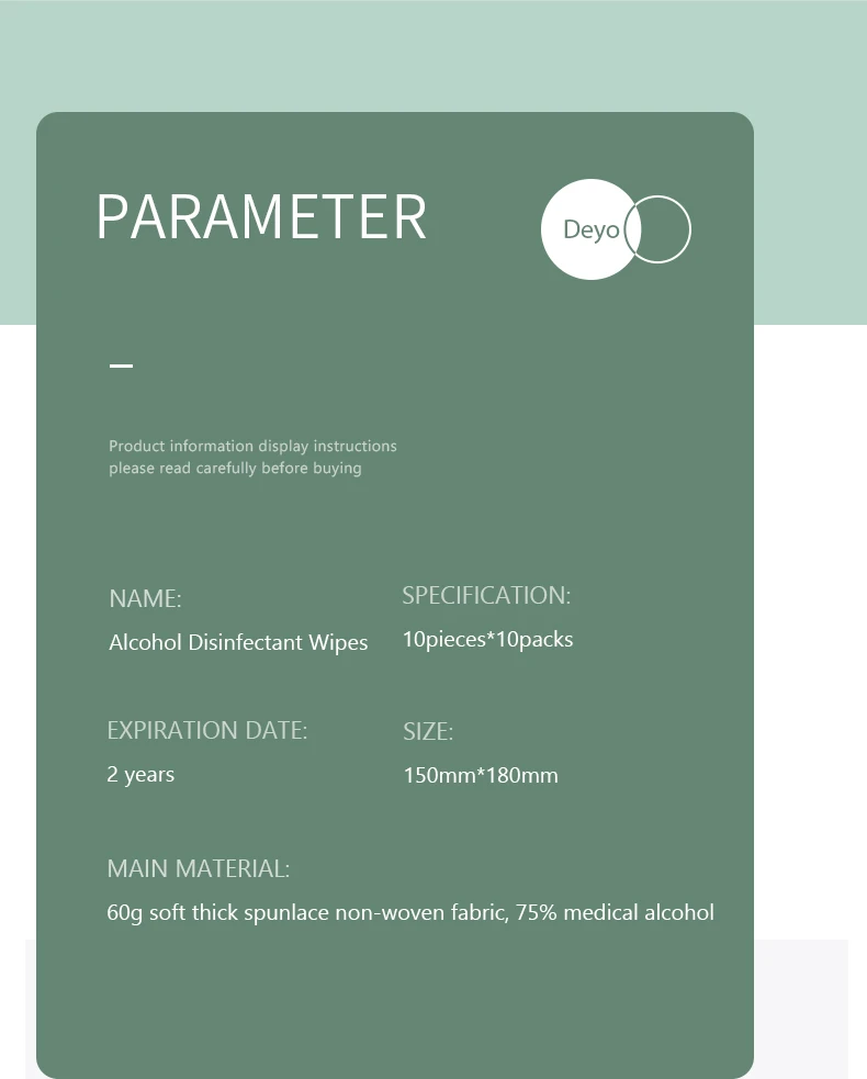 Характеристики: Название продукта: спиртовые салфетки Размер: 180 мм * 150 мм Основные ингредиенты: Нетканая ткань, медицинский спирт, чистая вода EDI Срок годности: 2 года Посылка включает в себя: 40 шт. x5packs Особенности продукта: 1. Не содержит флуоресцентных веществ и консервантов 2. Хороший эффект стерилизации, легко носить с собой 3. Для очистки и дезинфекции клавиатуры, мобильных телефонов, офисных принадлежностей, предметов для переноски, посуды, детских игрушек и т. д. 4. Аварийная дезинфекция небольших ран, таких как открытый туризм, кемпинг, плавание и т. д. Примечание: 1. Пожалуйста, используйте как можно скорее после открытия, избегайте высокой температуры и прямых солнечных лучей 2. Хранить в недоступном для детей месте и избегать еды по ошибке 3. Используйте с осторожностью для тех, у кого аллергия на алкоголь 4. Поверхность краски, металлическая поверхность, металлические изделия, изделия из стирола, кожаные изделия тестируются перед использованием, чтобы определить, что цвет не изменяется, используйте после износа Посылка включает в себя: 10piecesX10packs