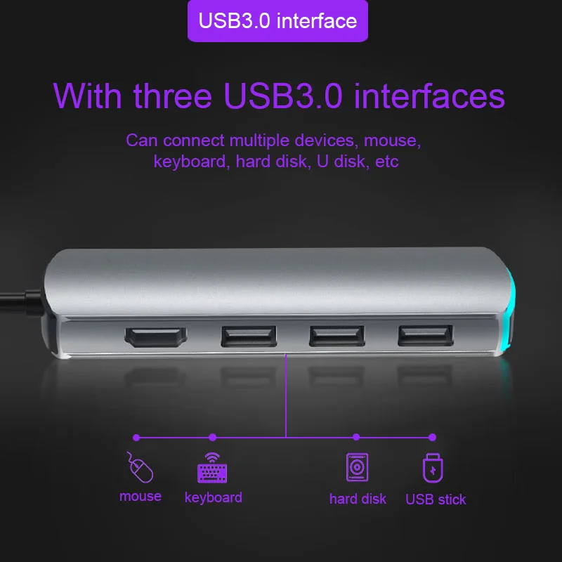 Type-C концентратор к RJ45 HDMI адаптер 4K Thunderbolt 3 USB C концентратор с концентратором 3,0 TF SD слот для чтения PD для MacBook Pro Huawei Matebook