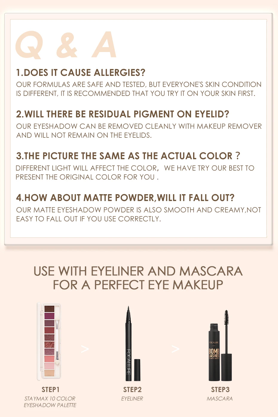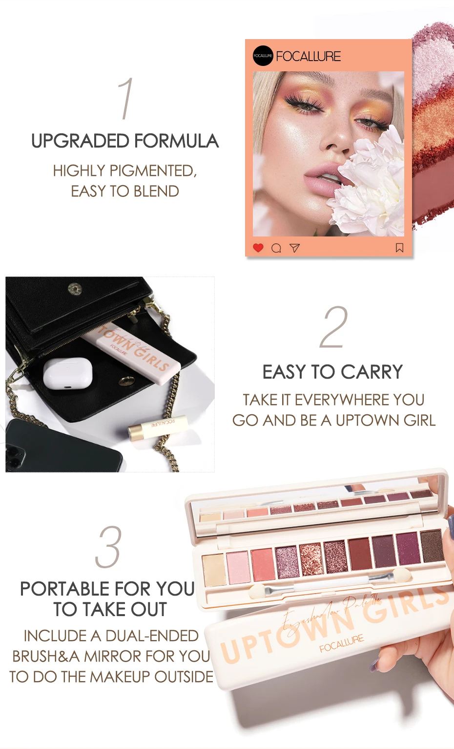 Описание: Три набора популярных теней для век обратно с более привлекательной упаковкой и хорошим качеством. Возьмите его с собой снаружи, чтобы сделать вас самым привлекательным в толпе! Каждая палитра имеет праймер для век + матовый + мерцающий + блеск, легко создать любой другой вид глаз. Порошок гладкий, высокопигментированный и легко растушевывается. Финиш прослужит днем и ночью. Три цветочных темы, в том числе Увядшая роза, Сакура и Подсолнух, приносят вам мечтательный взгляд. Цвет: #1 Увядшая роза-состоит из 1 конселера, 5 матовых, 3 мерцающих и 1 блестящего оттенка, от розового до темно-коричневого. #2sakura in dream-состоит из 1 конселера, 6 матовых, 2 мерцающих и 1 блестящего оттенка, от pithy pink до wine red. #3sunflower at sunset-состоит из 1 конселера, 5 матовых, 3 мерцающих, 1 блестящих оттенков, в диапазоне от оранжевого до красновато-коричневого. Особенности: Самая популярная серия оттенков, получите то, что вы хотите Усовершенствованная формула, высокопигментированная, легко растушевывается и держится весь день Сочетание различной текстуры, может создать различные глаза Палитра включает в себя двустороннюю кисть и зеркало, чтобы вы могли сделать макияж Инструкции по использованию: 1. Равномерно нанесите консилер в тени для век. 2. Равномерно нанесите светлые цветные тени на веки в больших размерах с кистью для теней для век, а затем нанесите темные тени для углубления контура глаз. 3. Поместите блеск в середину век