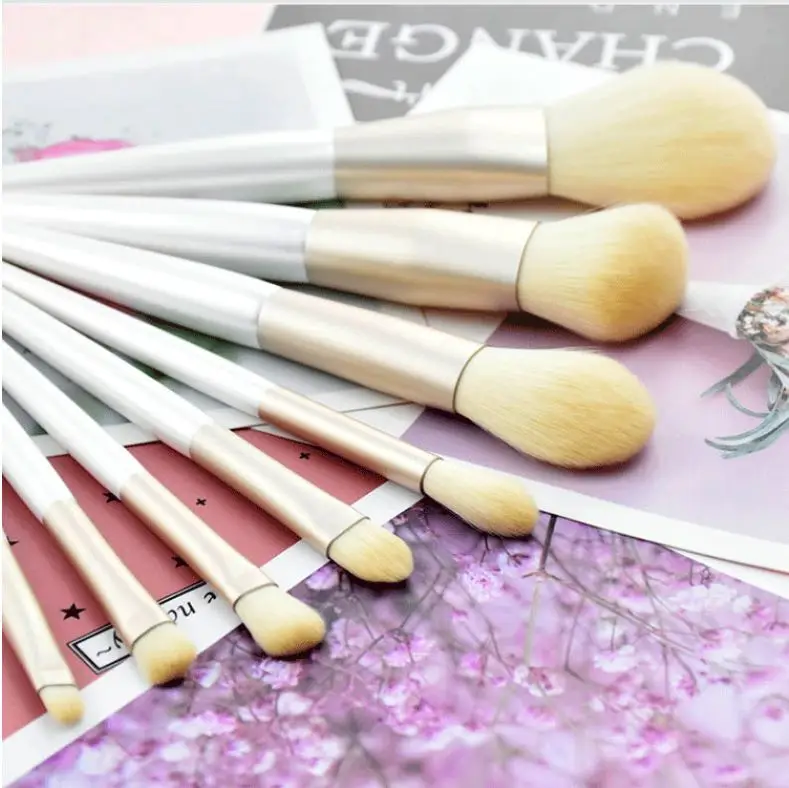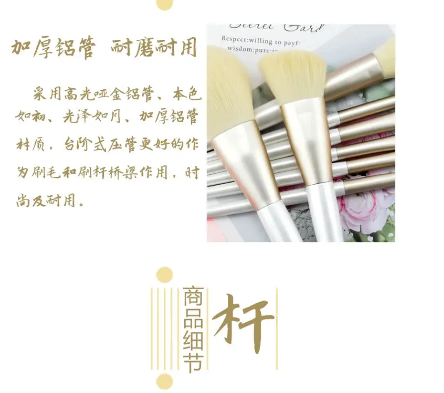 Название продукта: набор из 8 тупых золотых кистей для макияжа Материал: алюминиевая трубка/деревянная ручка/БАСФ волокна шерсти Подходит для пудры, румян, основы, контурирования, контура, теней для век, бровей, губ, пудры и других глаз и макияжа лица