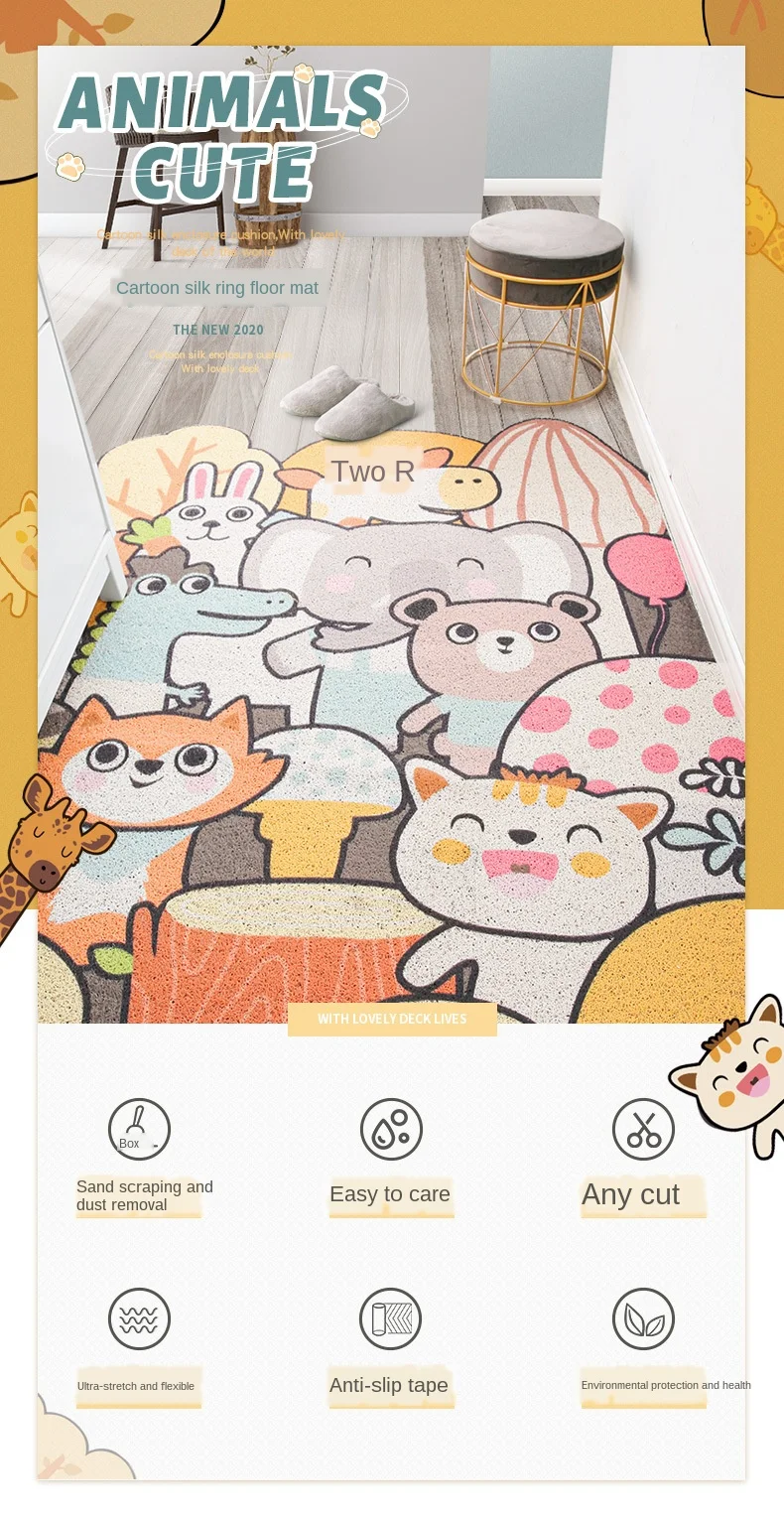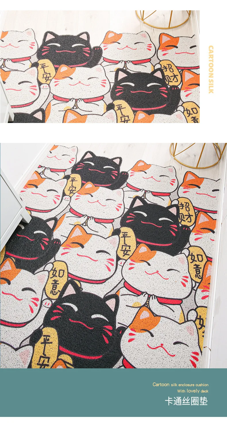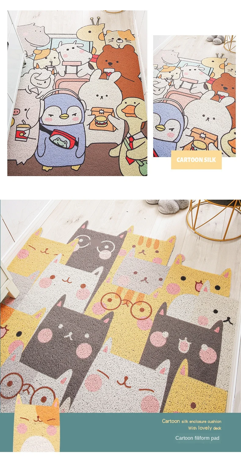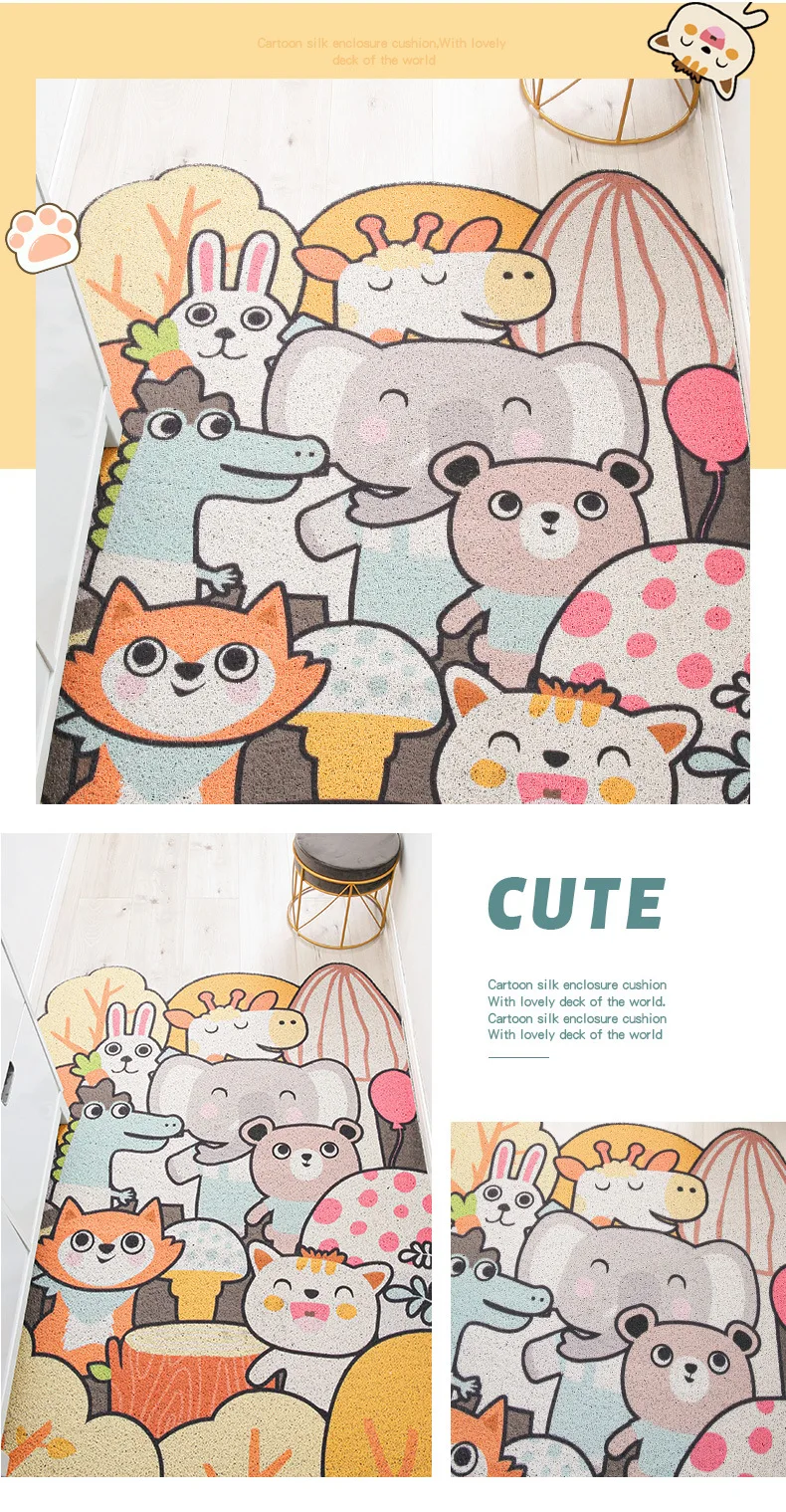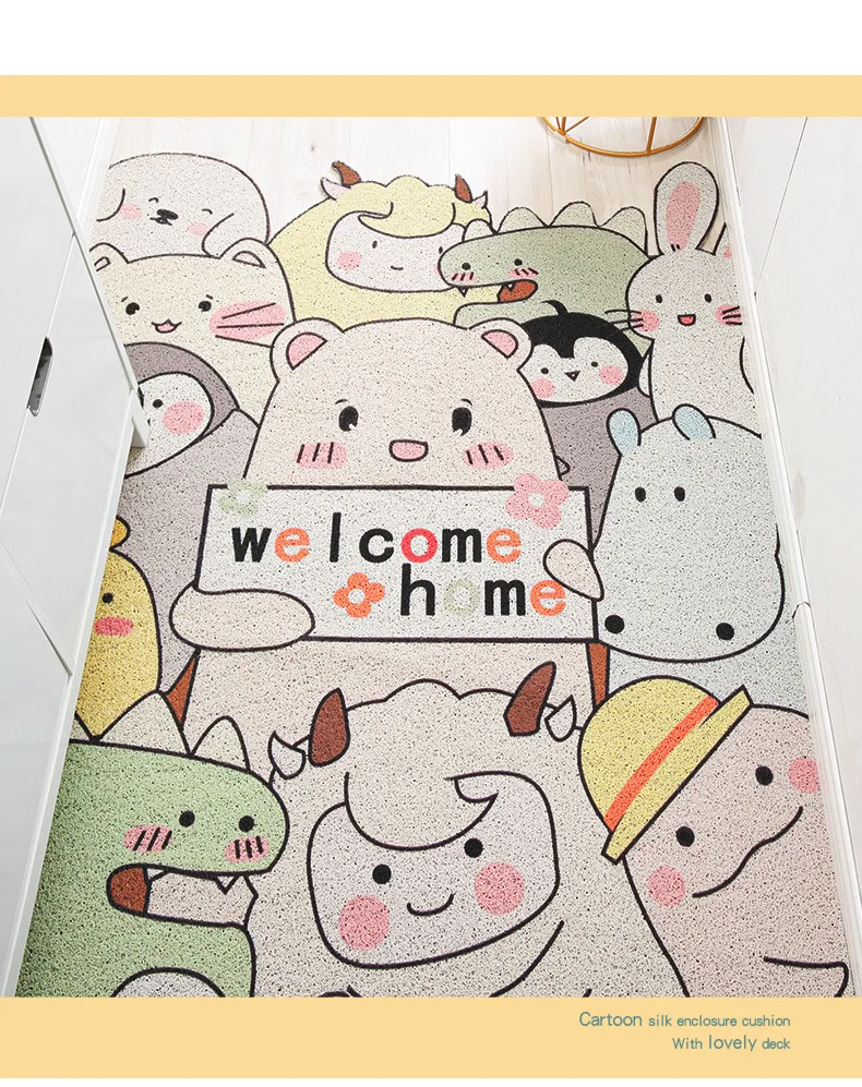 Мультяшный Печатный Коврик для двери, геометрические ПВХ шелковые петли, дверной коврик для входа, пылезащитный коврик неправильной формы на заказ, Противоскользящий коврик