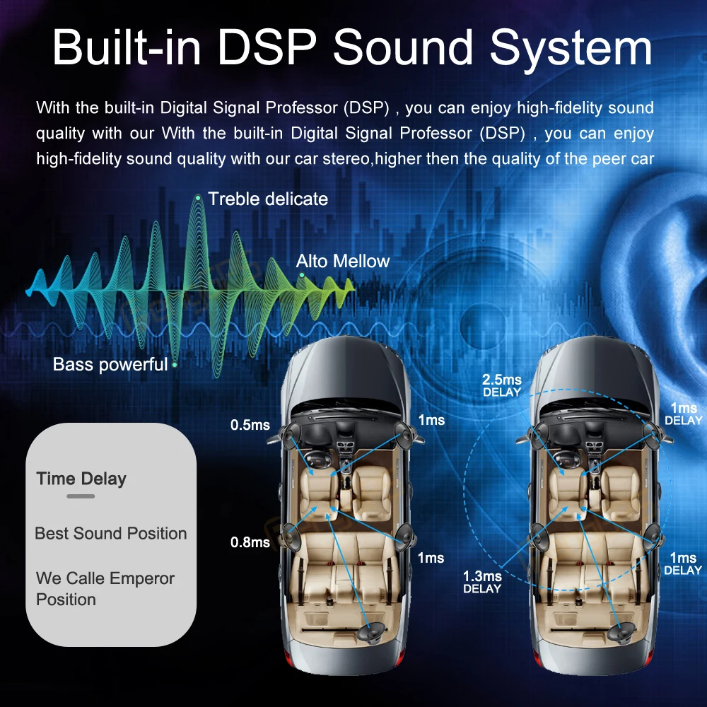 1. Встроенный DSP может улучшить качество звука, поддерживает 3D объемный звук в качестве чипа, встроенного в этот блок. 2. Благодаря встроенному цифровому дизайну сиганала (dsp) вы можете наслаждаться высоким качеством звука с помощью нашего автомобильного стерео, высоким качеством, а затем качеством уровня однорангового автомобиля, лучшим выбором энтузиастов