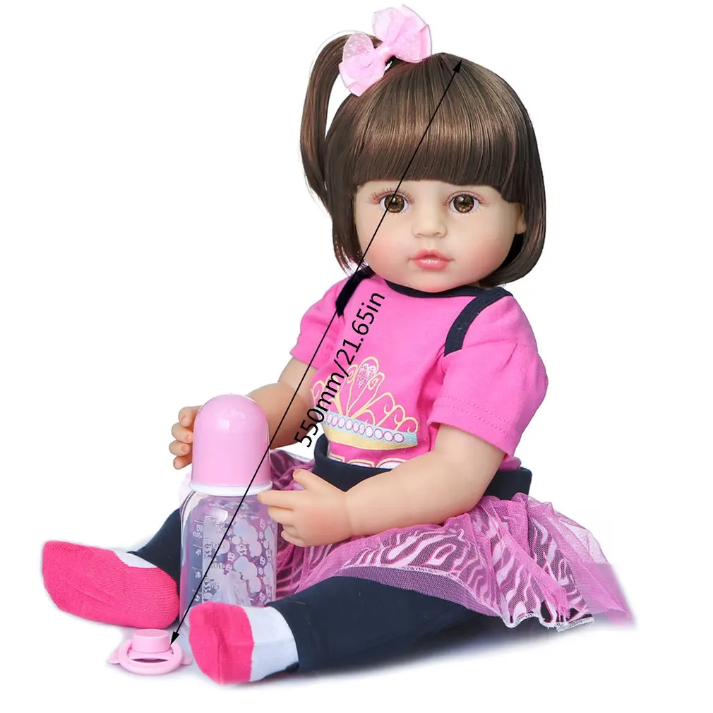 Кукла reborn baby 55 см мягкие силиконовые куклы reborn baby мягкие реалистичные коричневые светлые волосы сюрприз девочка одежда подарки