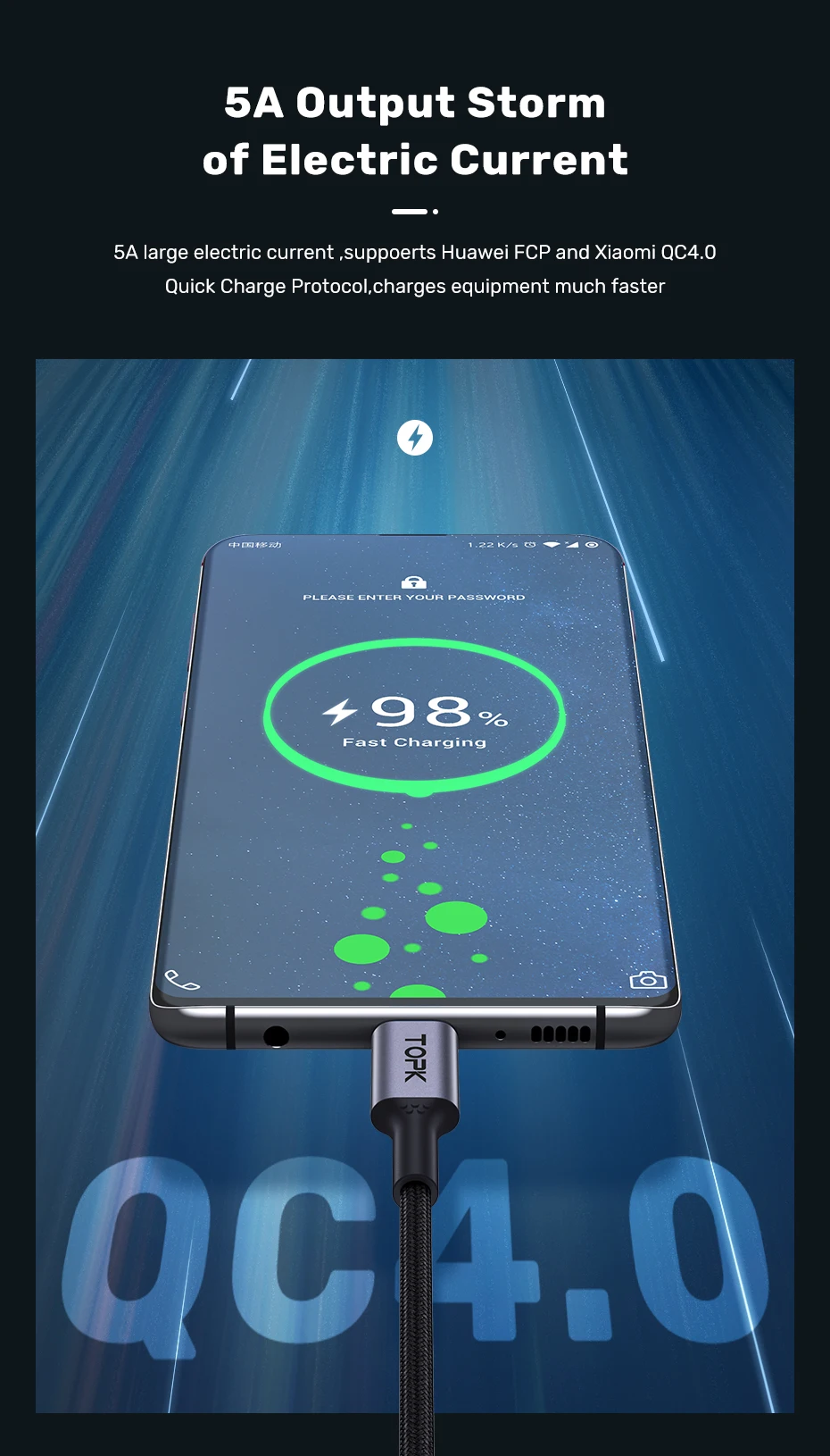 5A large glectric current,suppoerts Huawei FCP and Xiaomi QC4.0 Quick Charge Protocol charges equipment much faste
