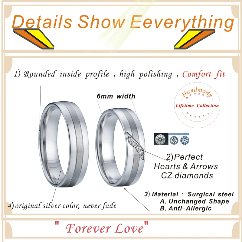 Цена за 2 кольца: сначала выберите мужской размер кольца, затем вы можете выбрать размер кольца для женщин.