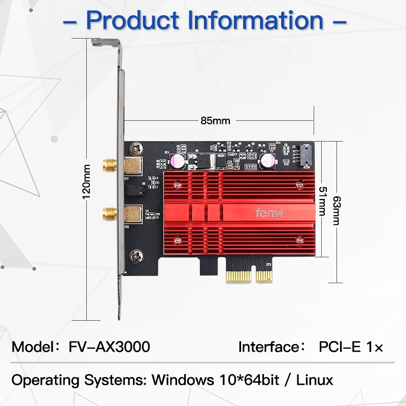 Мгновенное обновление 802.11ax Wi-Fi для вашего настольного ПК: нет более грязных кабелей Ethernet; Чип Wi-Fi 6 AX200 802.11ax для сверхбыстрых соединений до 2400 Мбит/с; Выбор двухдиапазонной работы 2,4 ГГц и 5 ГГц с обратной совместимостью со всеми существующими устройствами; Высокомощная конструкция для большего покрытия сигнала; Специально разработанный радиатор обеспечивает стабильную и надежную непрерывную работу. Антенны с высоким коэффициентом усиления 6DBi обеспечивают лучший прием сигнала.